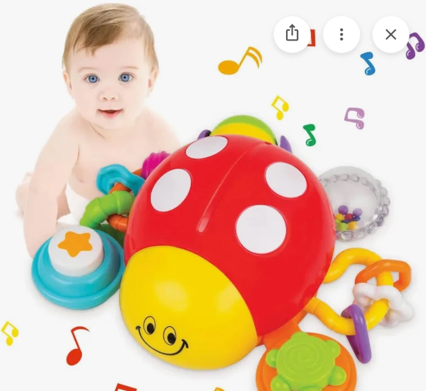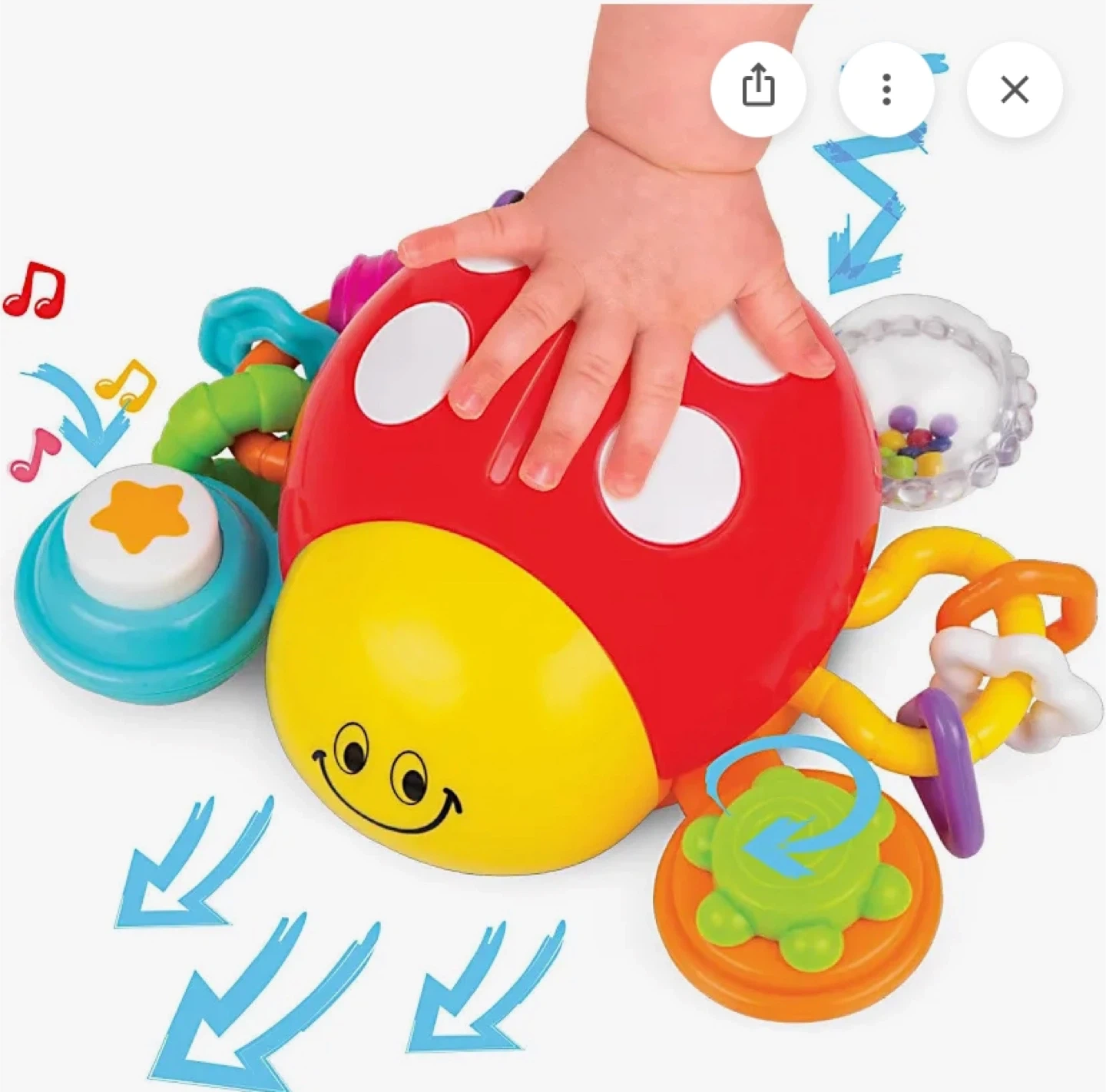 This KiddoLab Ladybug Crawling Toy is designed to entertain little ones. It features colourful spinning wheels and a rattling sound. The toy encourages crawling and sensory exploration for babies and toddlers.