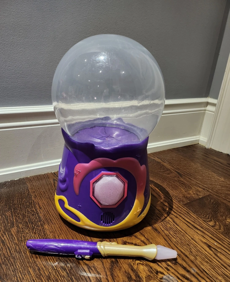 Magic Mixies Crystal Ball toy with wand and stuffed animal. You can put your own stuffed animals or objects to perform magic. Barely used, still got lots of smoke left. Instructions can be found online, and tons of instructional videos.