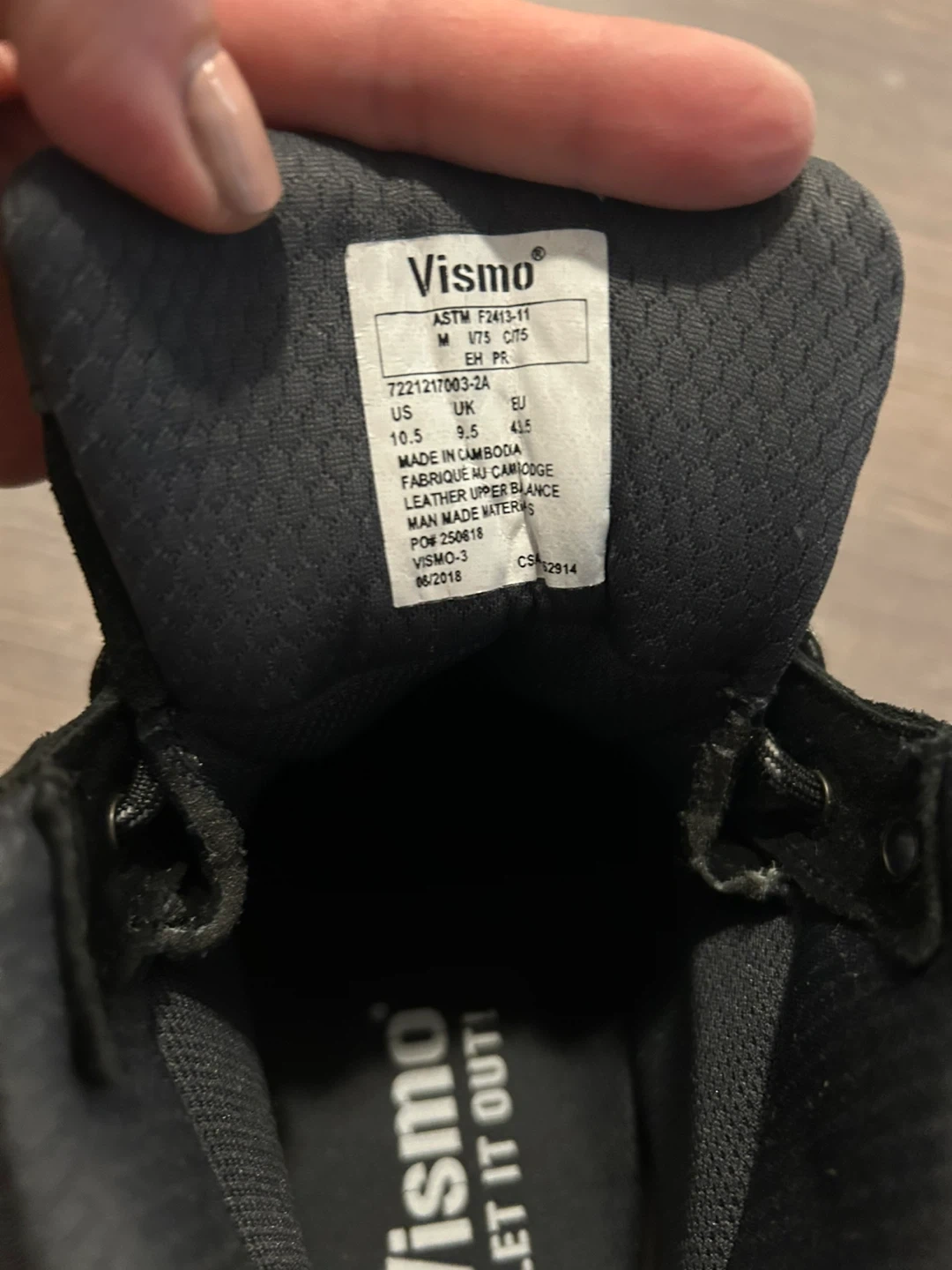 Selling a pair of Vismo work boots in black. They are new and ready for a new owner. The size is US 10.5 / UK 9.5 / EU 43.5.