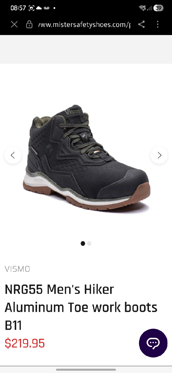 Selling a pair of Vismo NRG55 Men's Hiker Aluminum Toe work boots. These are waterproof and great for any work environment. Retails for $219.95 our prize $190 cash is firm