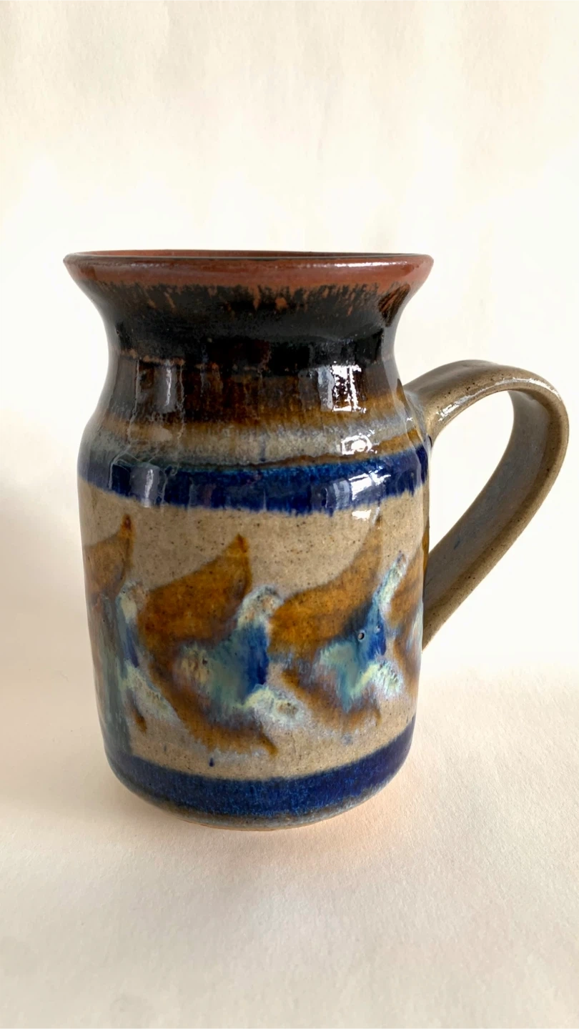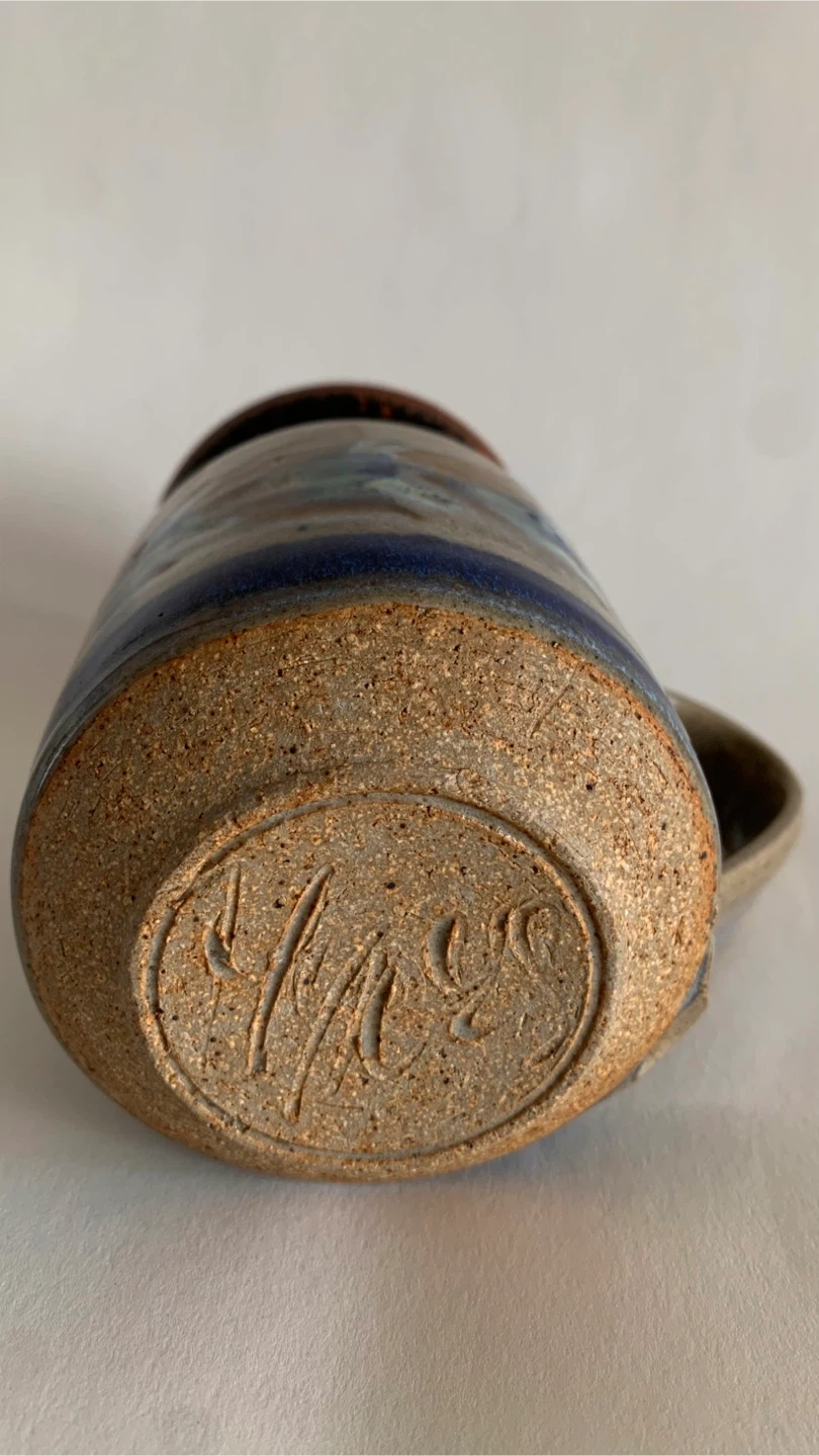 Show allVitage Studio Art Pottery Tall Mug Glazed Blue Brown Rustic