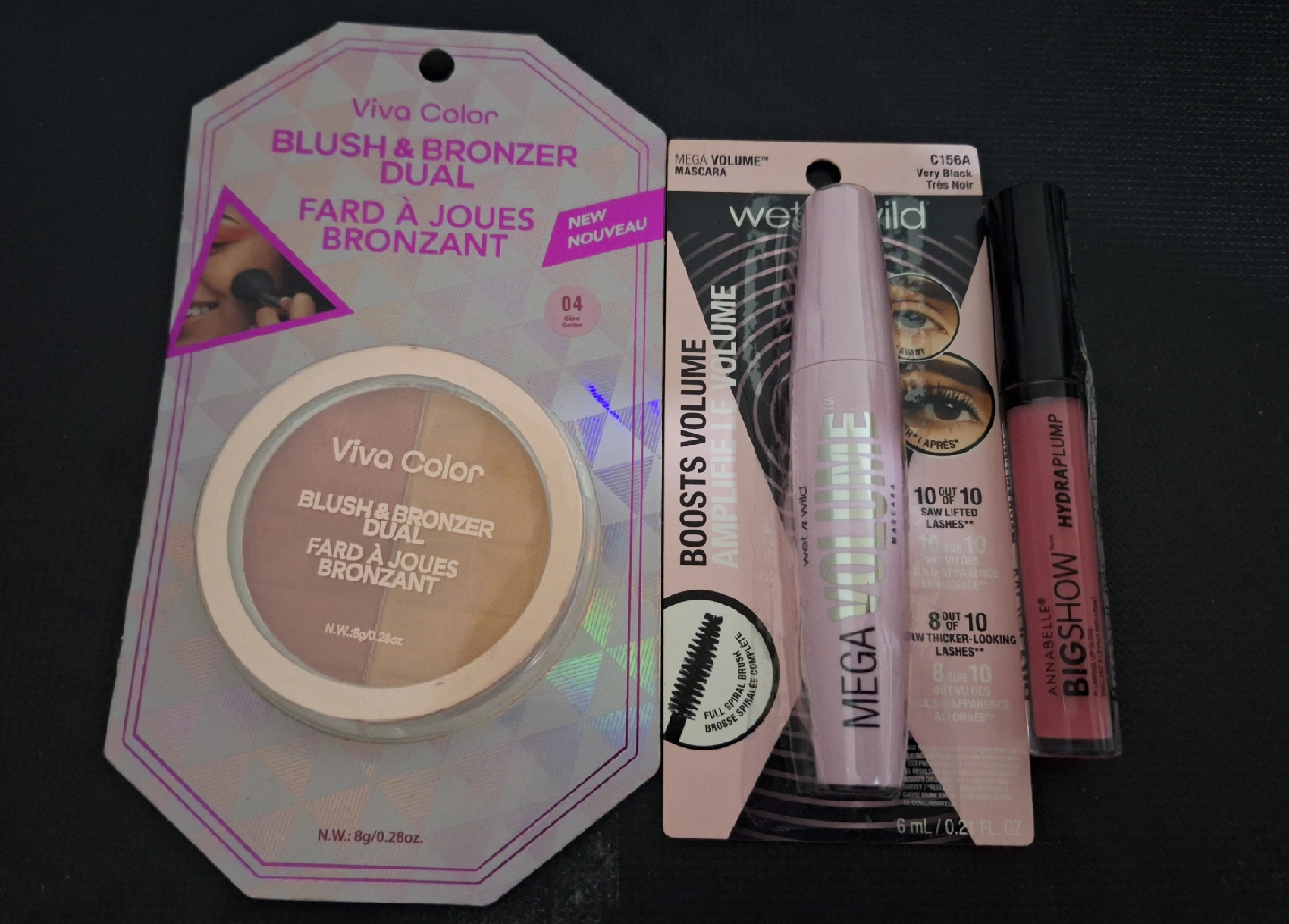 3 set: Viva Color Blush & Bronzer Dual Wet n Wild Mega Volume Mascara in shade: C156A Very Black Annabelle Bigshow Hydraplump in shade: Florescene. Brand new and unused. Payment: Cash only Meeting spots options: Greenwood park, Greenwood subway station or outside of Rocca's Nofrills. Other places no exception.