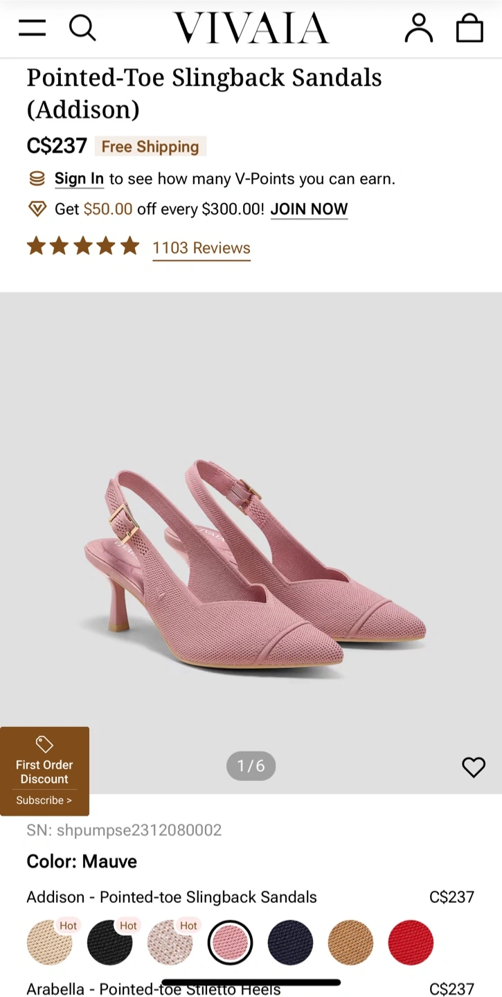 VIVAIA Addison Pointed-Toe Slingback Sandals - Mauve, Size 7