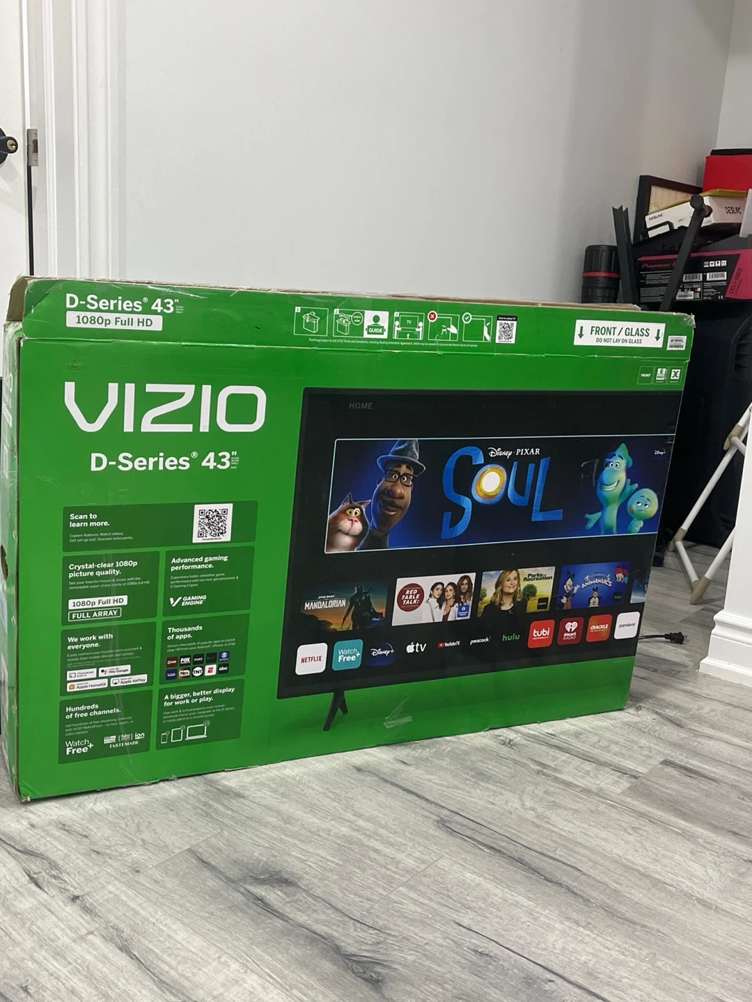 10Selling a Vizio D-Series 43-inch Smart TV in great condition. It delivers crystal-clear 1080p Full HD picture quality and includes built-in streaming apps like Netflix, Disney+, Hulu, YouTube, Apple TV, and more. Perfect for gaming, movies, or everyday use! Features: • 43” Full HD (1080p) Display • Smart TV with built-in WiFi • Access to popular streaming apps • Full-array LED backlight for better brightness and contrast • HDMI & USB ports for easy connectivity • Works with Alexa, Google Assistant, and Apple AirPlay