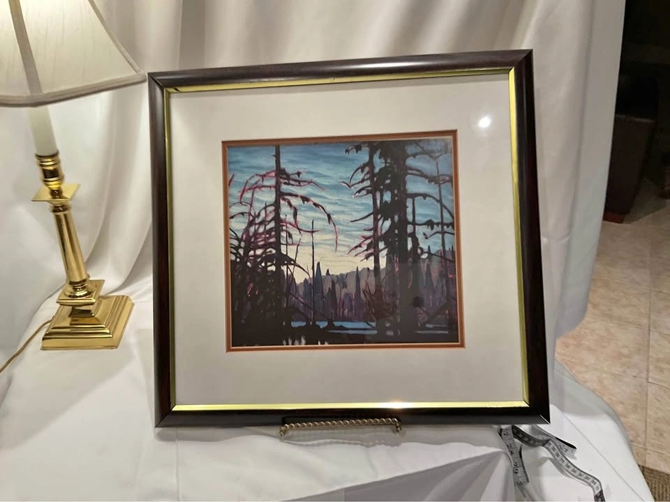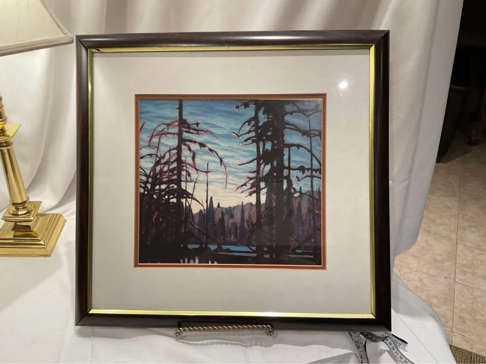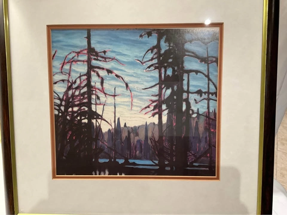 Canadian Artist Lauren Harris Member Group of Seven Print “ Beaver Swamp”. 18 " x 18 ". Good Condition. #340/580. Smoke & Pet Free Home. Cash Only - Richmond Hill Bathurst & King Rd.