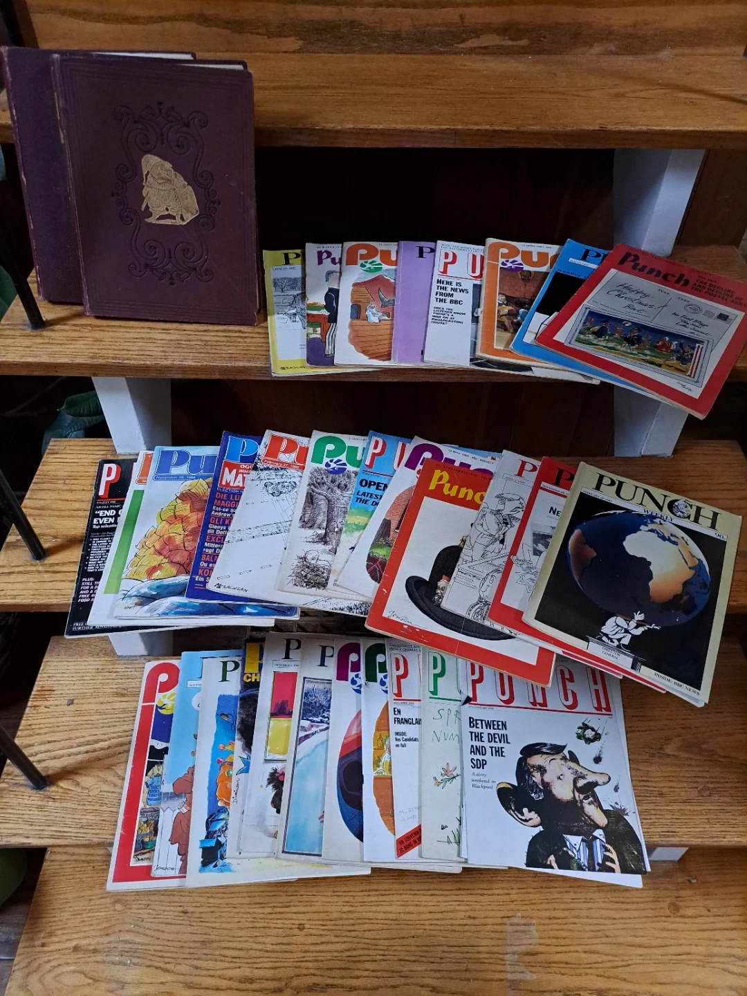 A collection of vintage Punch magazines. These issues offer a snapshot of humour and current events from past decades. Perfect for collectors or anyone interested in satirical British humour.
