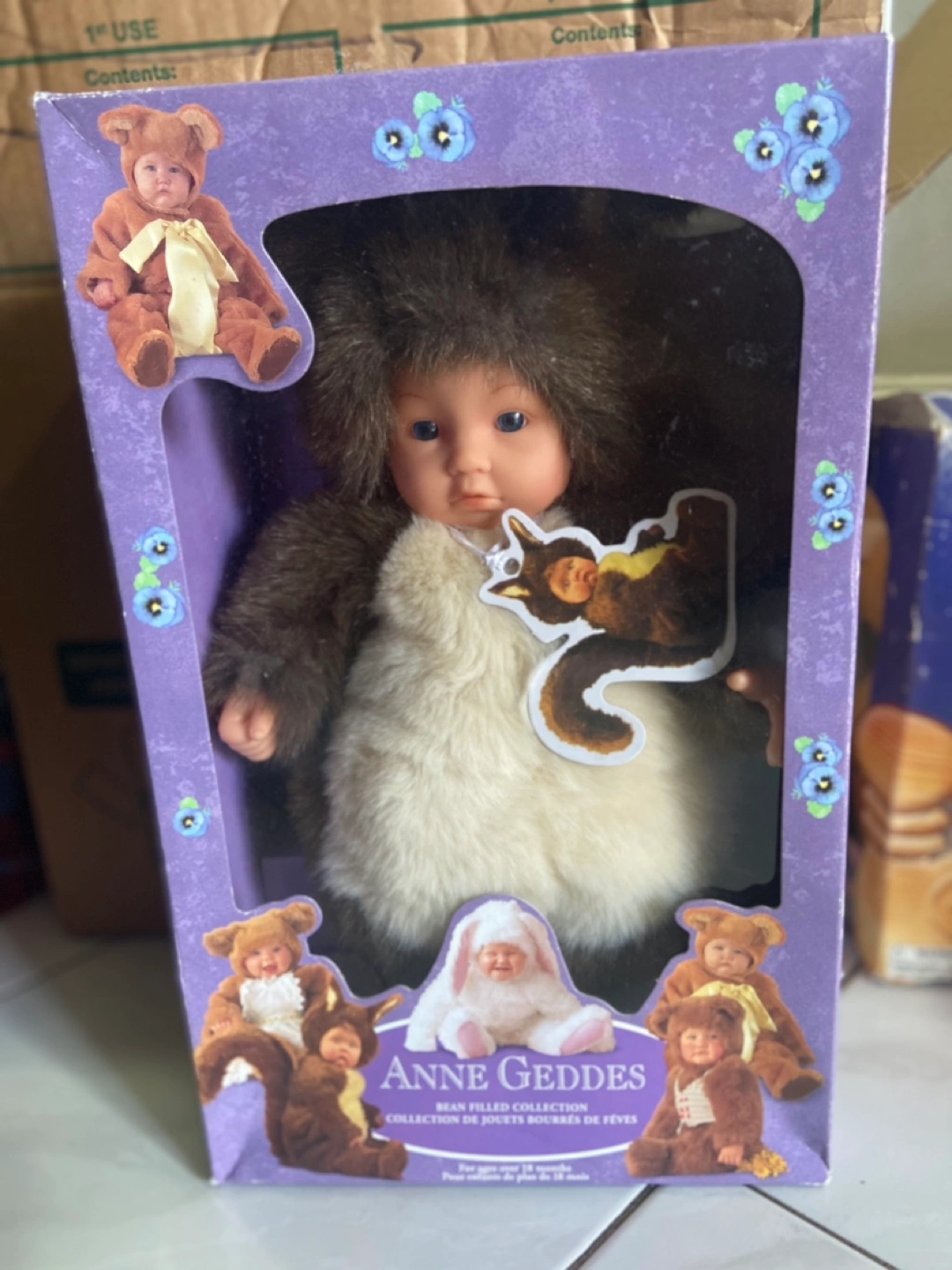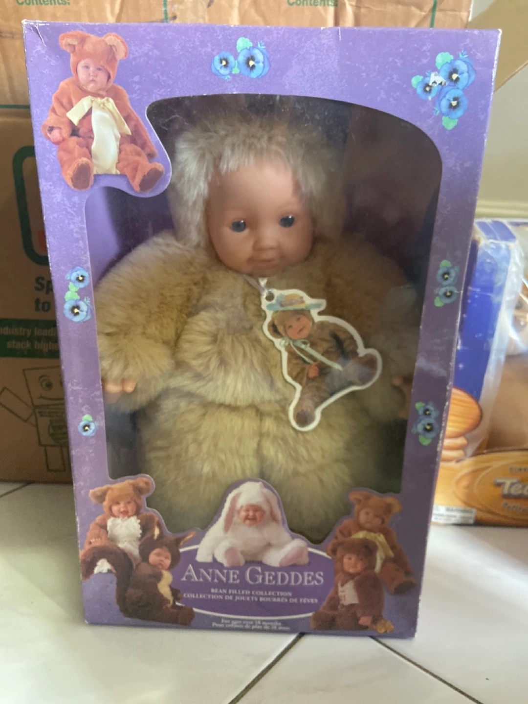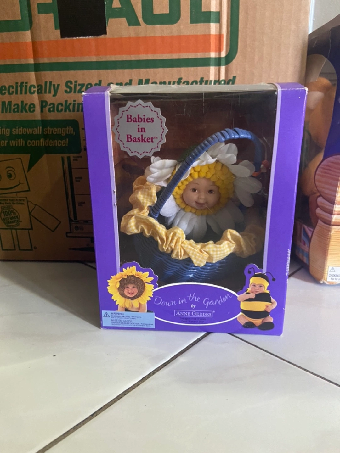 Five adorable collectible Anne Geddes dolls. New in box. (damaged box of Down with the garden)