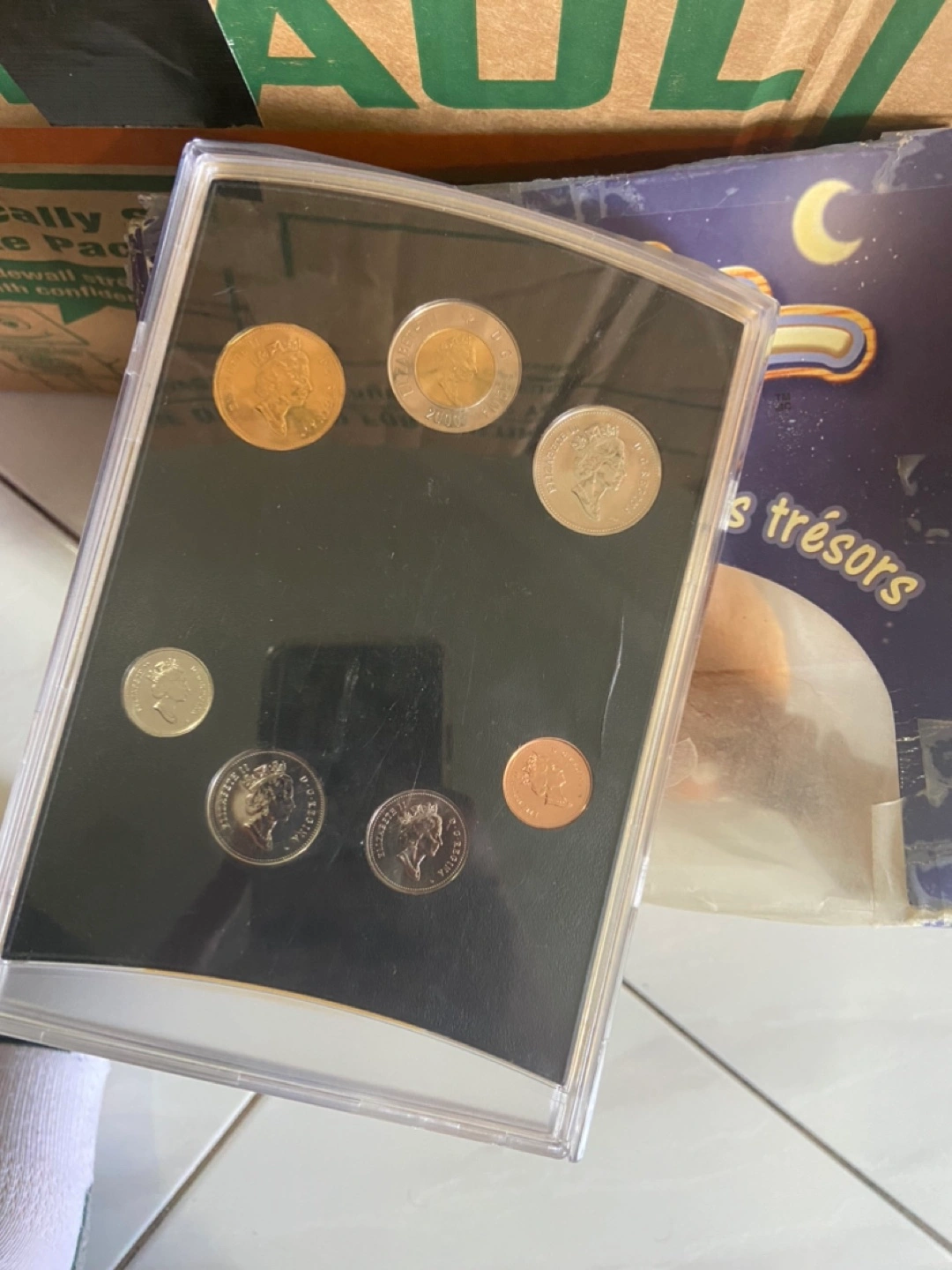 Vintage Tiny Treasure Teddy- with Canadian Coins from the year 2000 (opened/damaged box, no missing pieces.