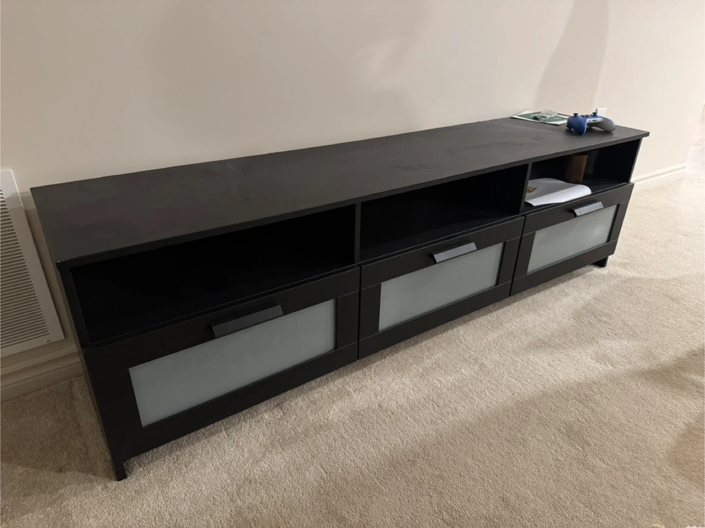 IKEA Black Media Console TV Stand with Frosted Glass Doors