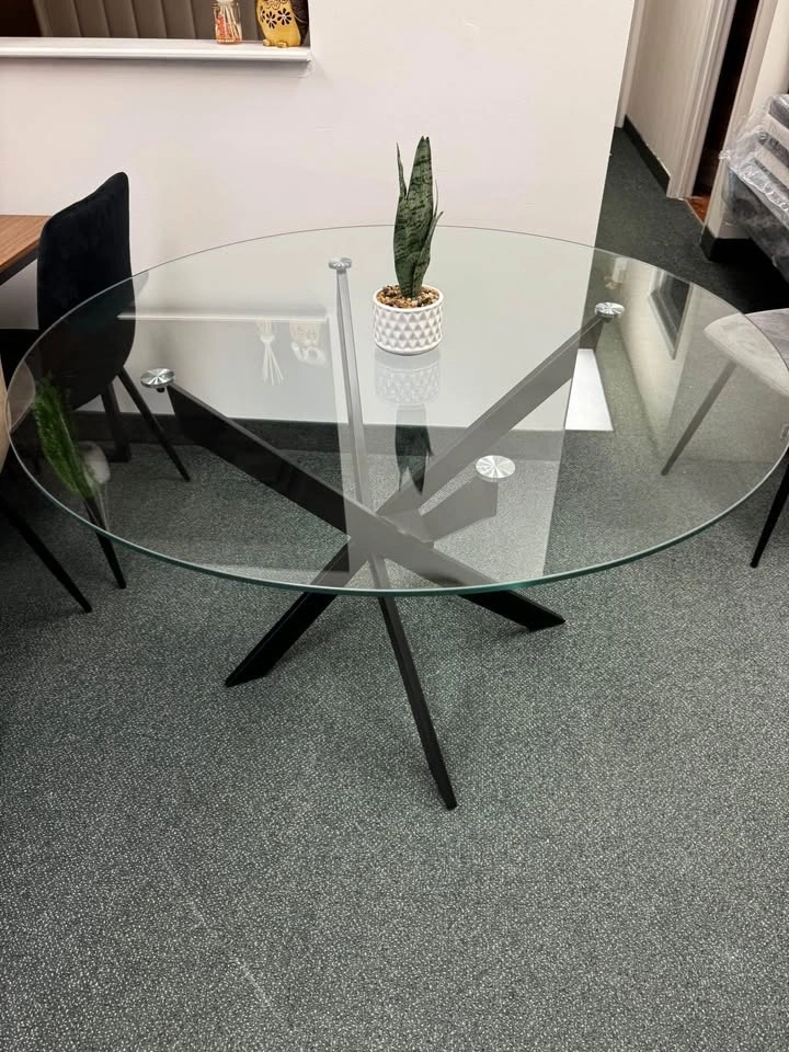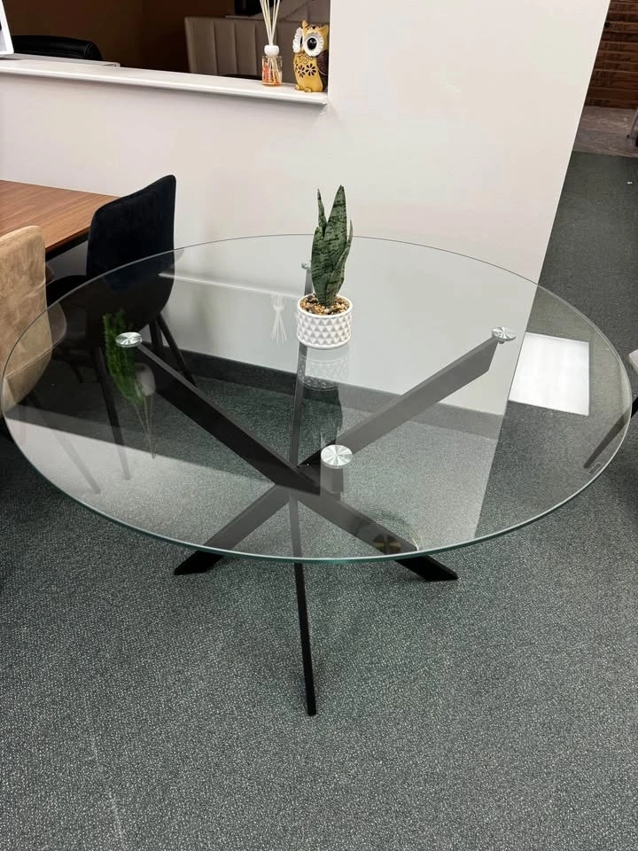 Round - 47” with 9mm tempered glass. Easily accommodates 4 people. Price: $175