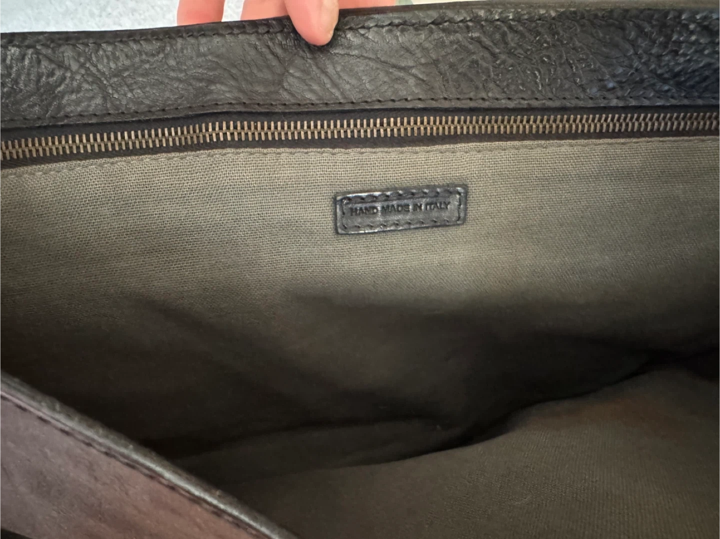 Genuine black leather messenger bag by John Varvatos. Crafted hand made in Italy. It's a stylish and practical bag for everyday use.