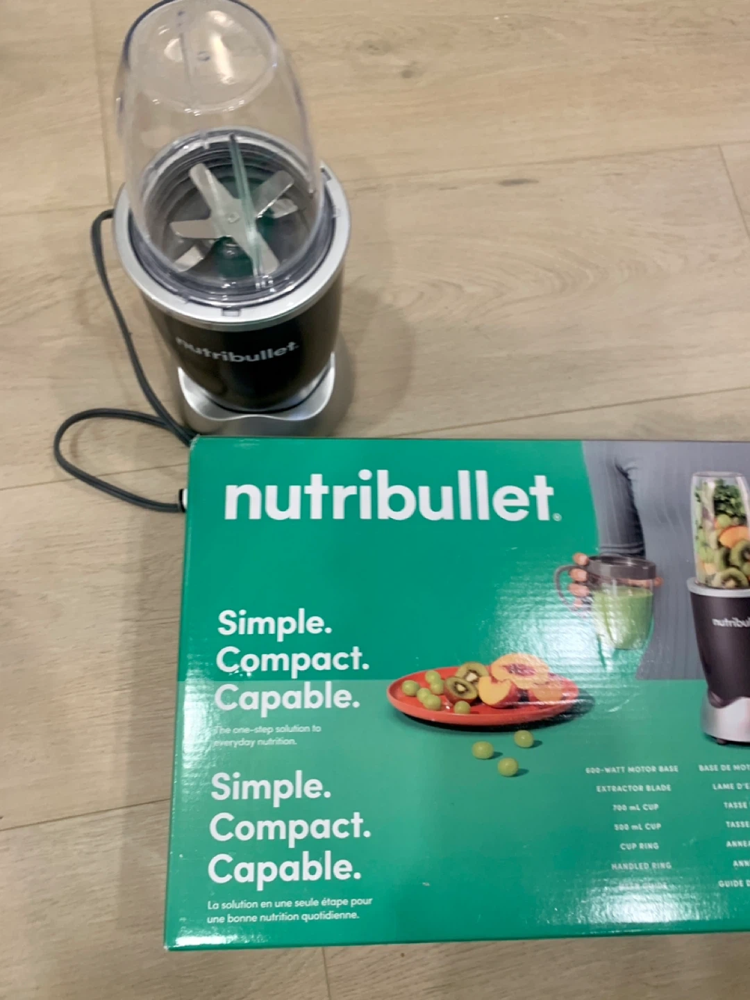 NutriBullet compact blender. Includes 600-watt motor base, extractor blade, and 700ml cup. Simple, compact, and capable for everyday nutrition. Amazing condition