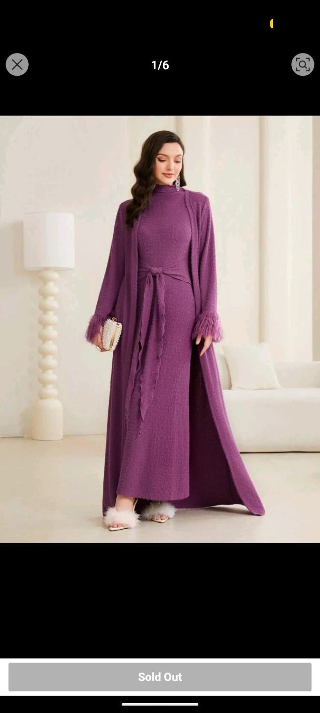 Brand NEW Purple Knit Cardigan/open abaya with Feather Trim