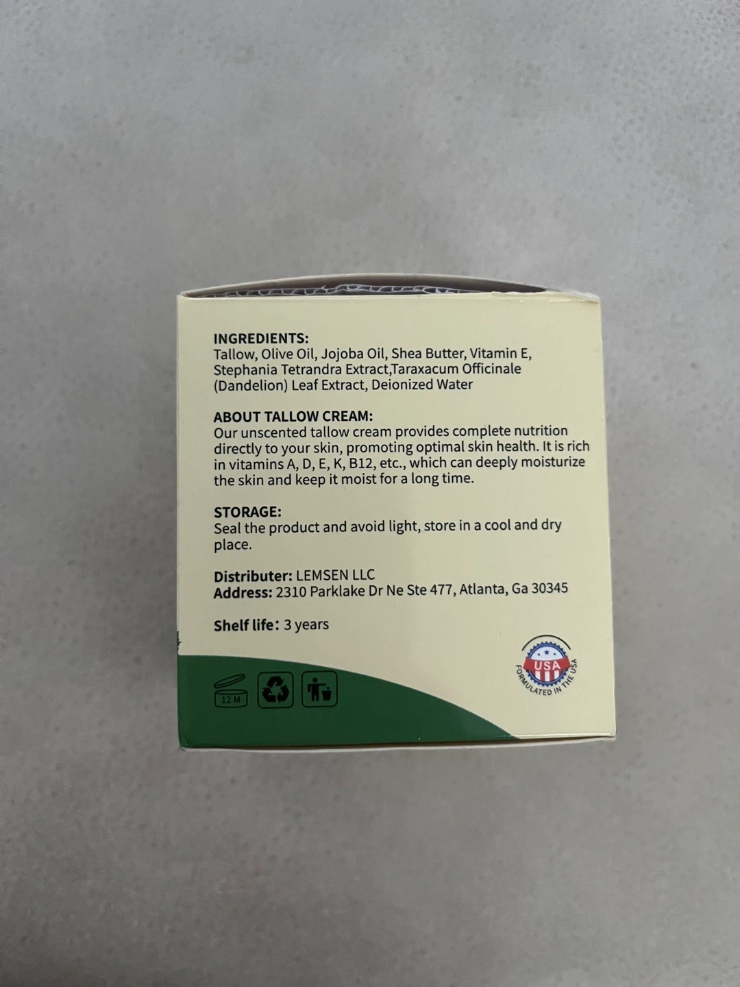This whipped tallow cream is made with 100% grass-fed and finished tallow. It offers deep hydration and fast absorption for your face and body. Unscented formula. Net Wt. 4 oz. Expiration 14/05/2028