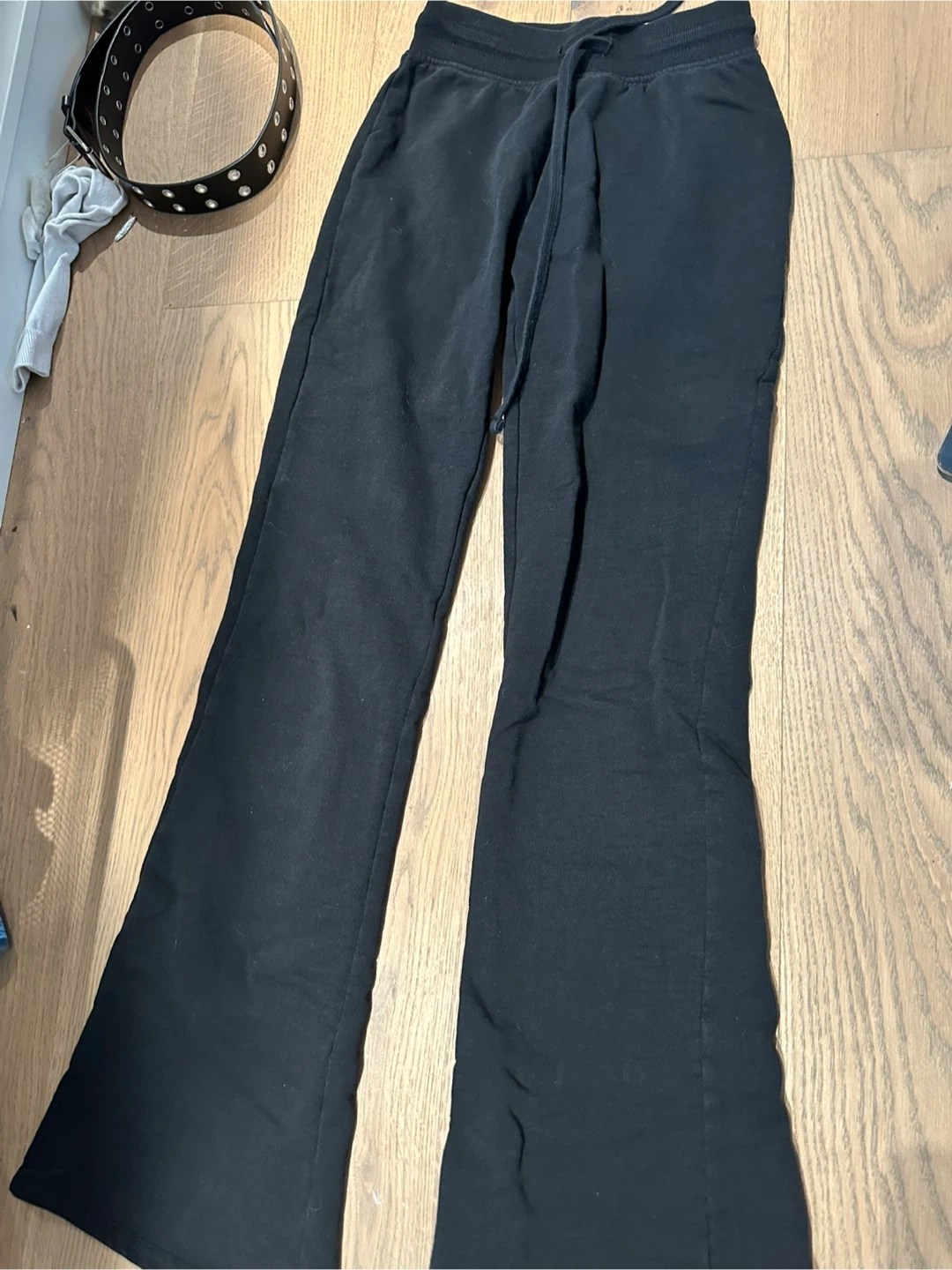 Super cute black flare sweatpants by Zara. These pants feature an elastic waistband with a drawstring closure, size small! Love these pants unfortunately they just got too small! Barely worn.