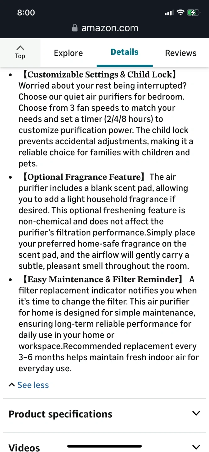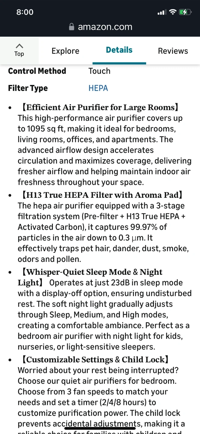 Big sales- True HEPA Air Purifier-Large Room covered 1095 sqft