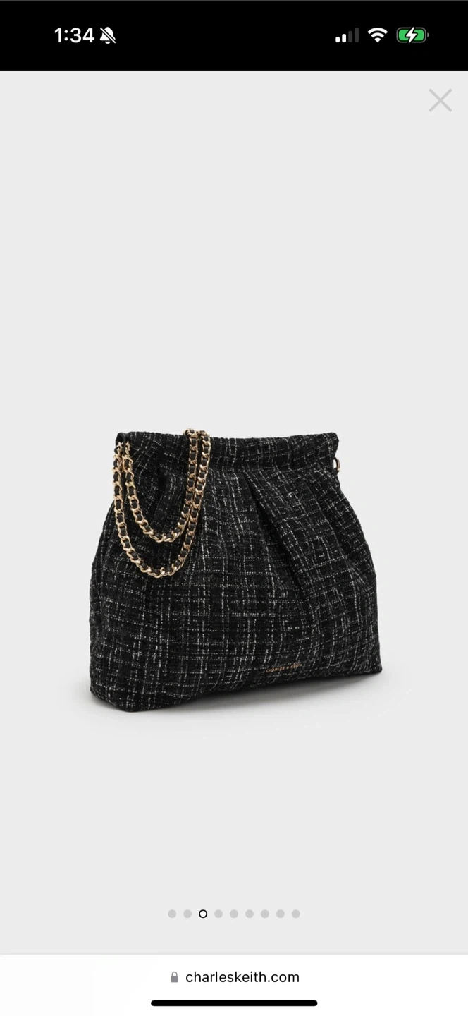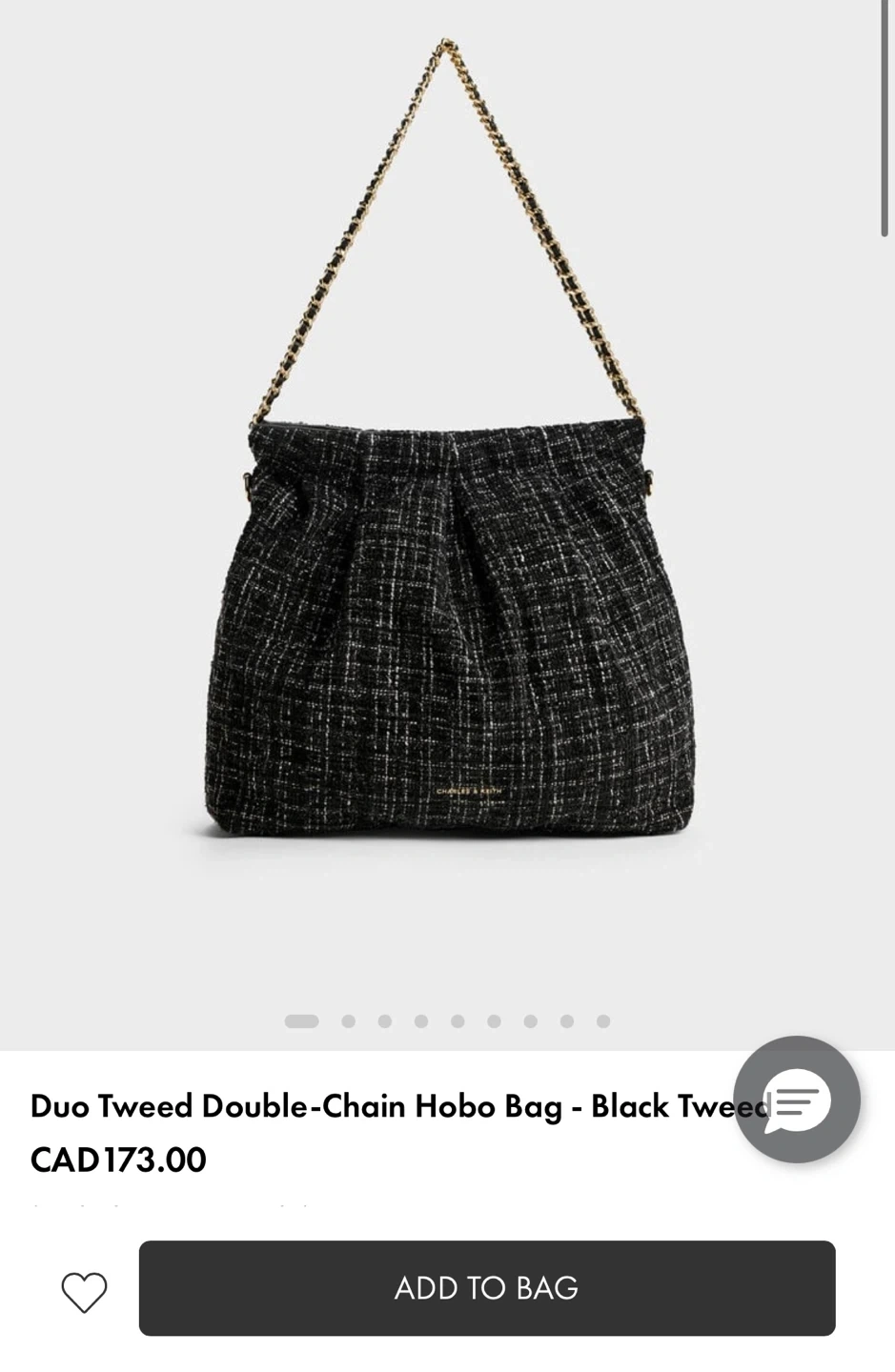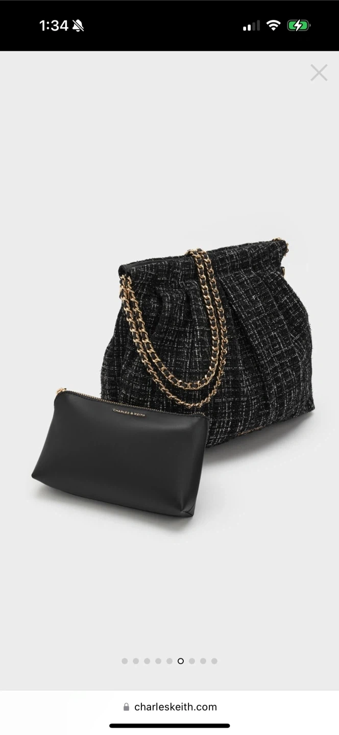 Selling a Charles & Keith Duo Tweed Double-Chain Hobo Bag in black tweed
