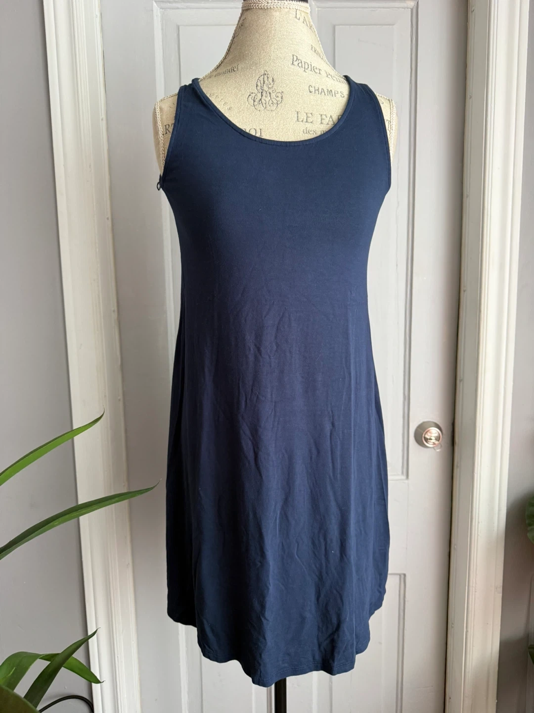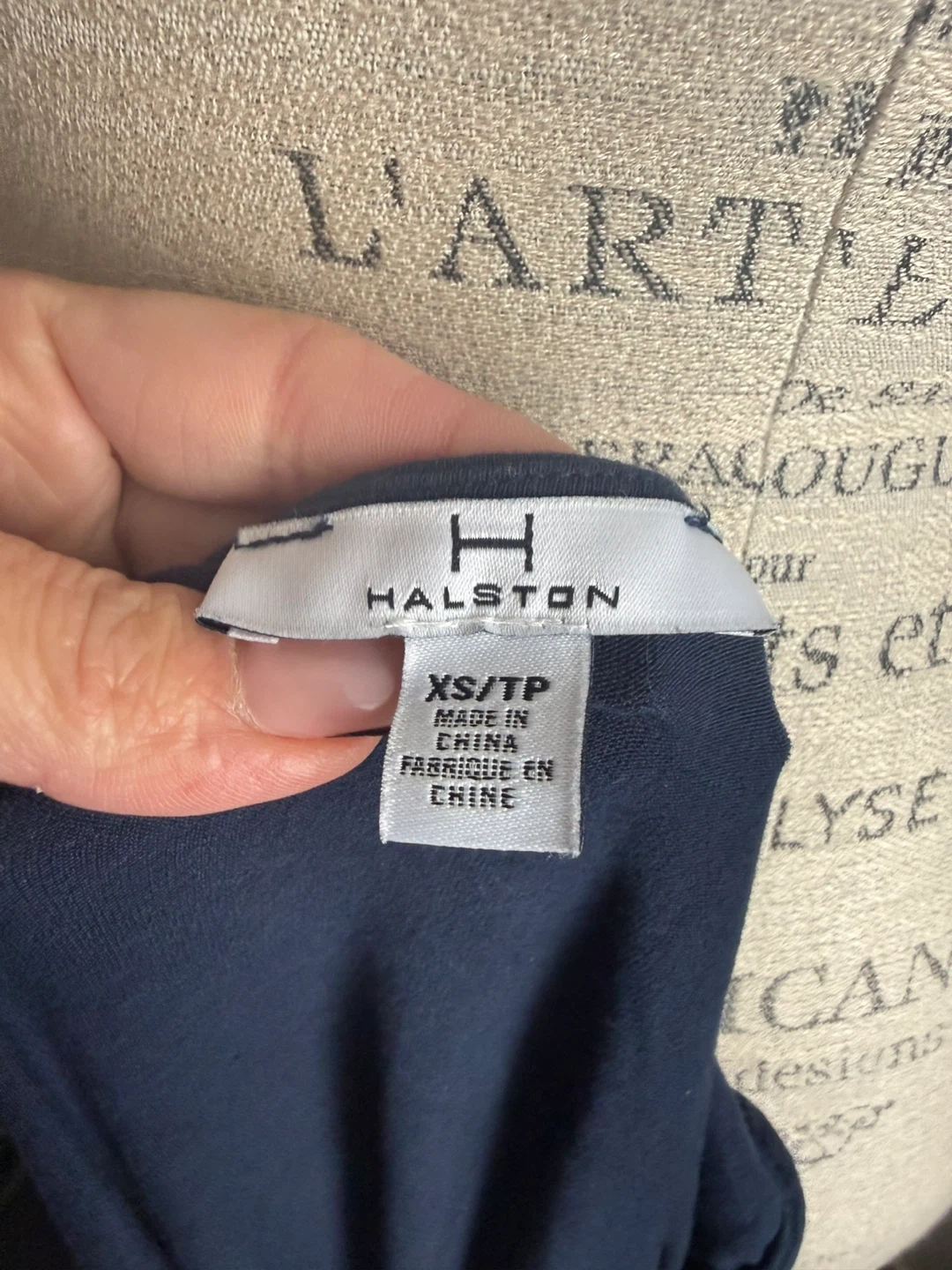 Halston navy sleeveless A-line dress. It's a size XS/TP, made in China. This dress is a versatile wardrobe staple.
