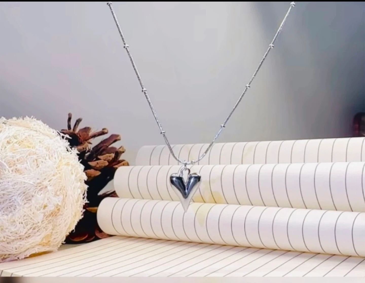 Features a small heart pendant.