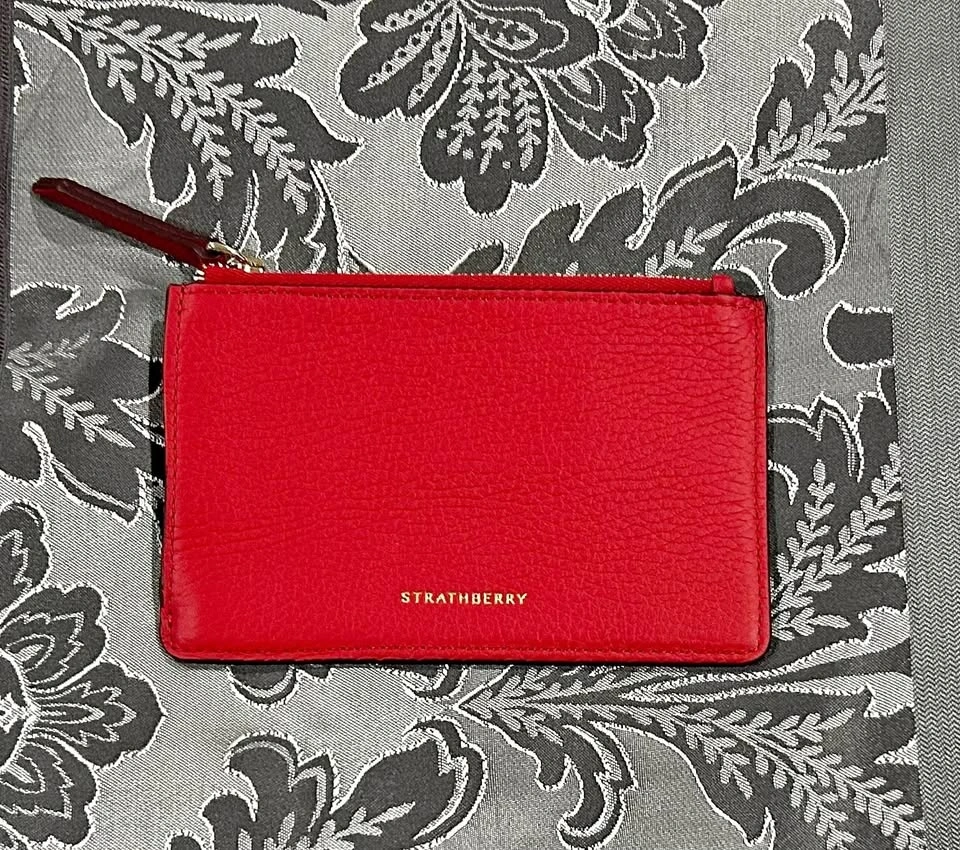 Brand new Strathberry Charlotte Purse in ruby grain leather with gold-tone hardware. Slim, lightweight zip pouch — perfect for coins, cards, keys, or slipping into mini bags.