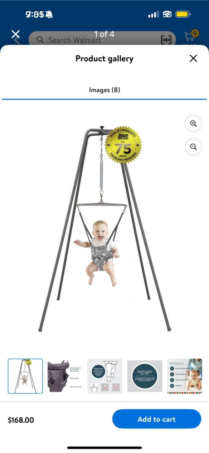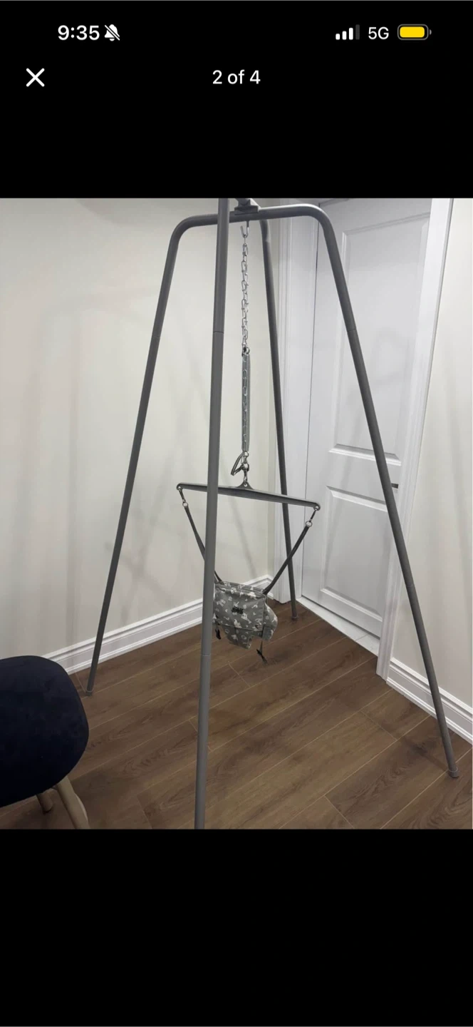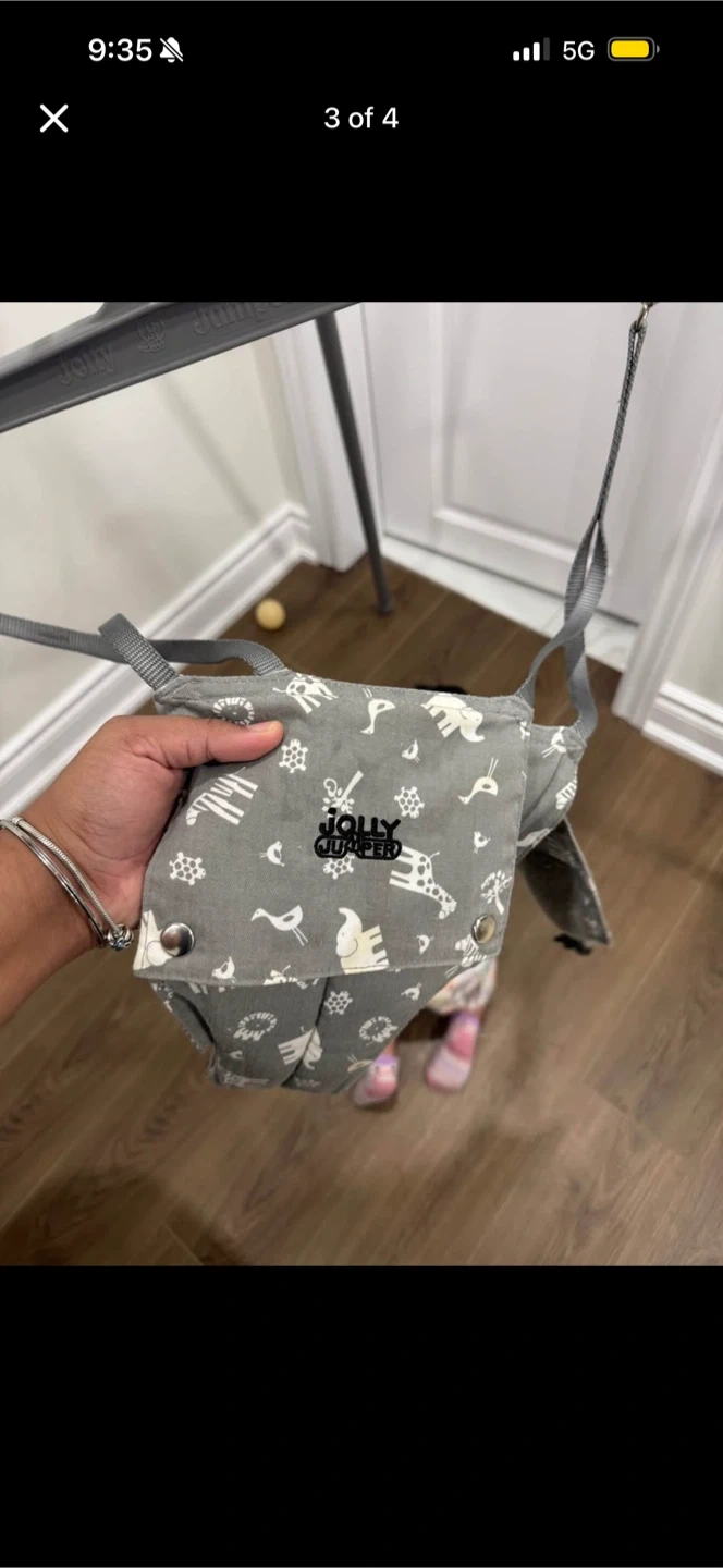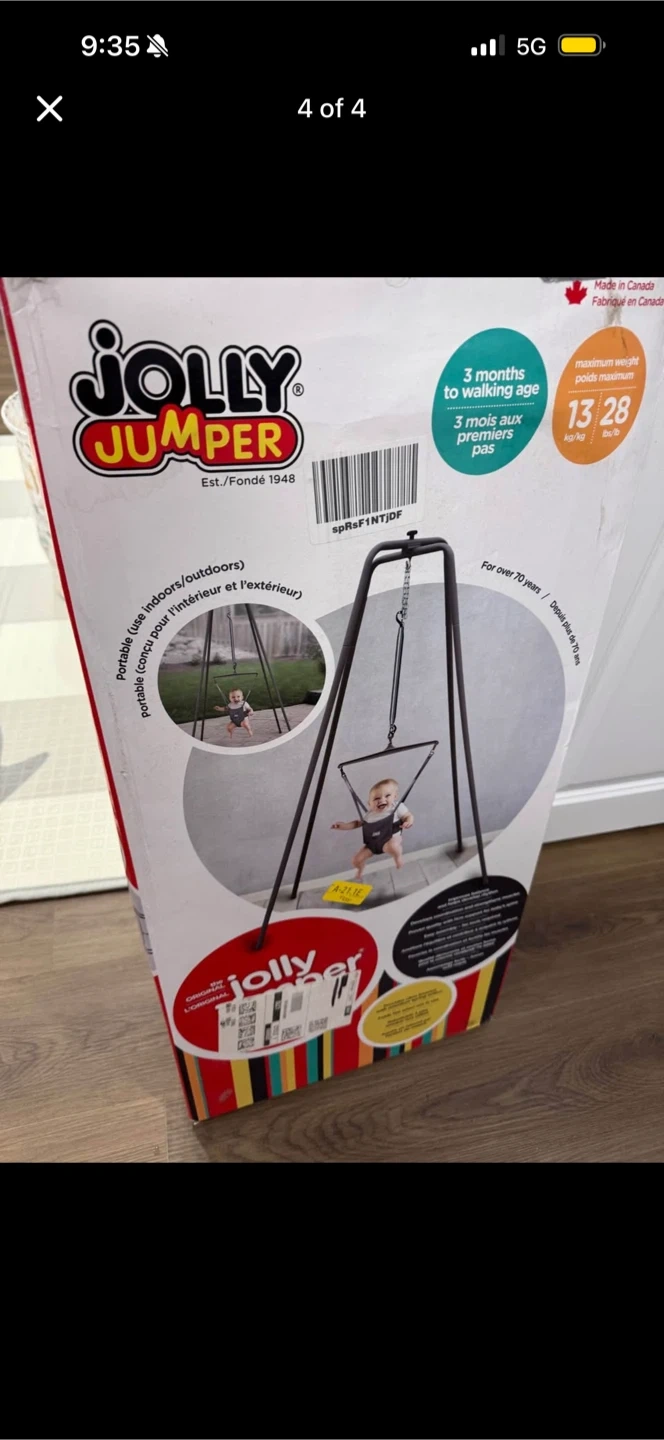 This Jolly Jumper is for babies 3 months to walking age. It supports up to 28 lbs. It's designed for indoor and outdoor use! Great for little ones to get some exercise and have fun.