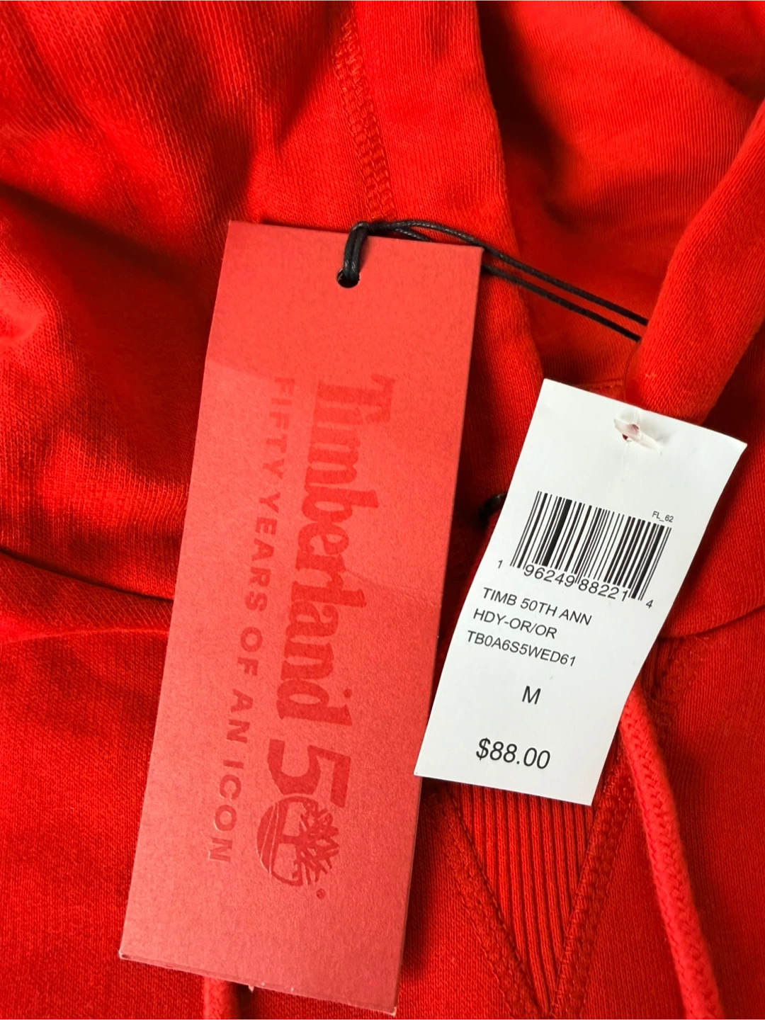 This is a red Timberland hoodie with the "Established 1973" logo. It's a size medium. Made with a comfortable cotton blend.