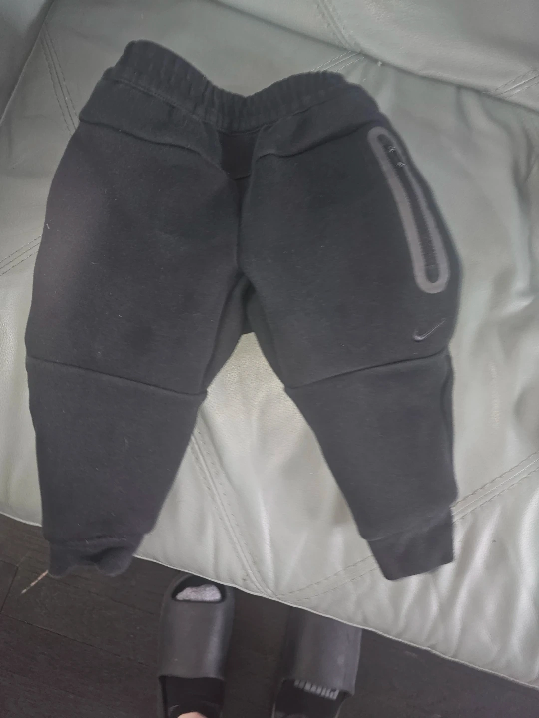 This is a black Nike Tech Fleece hoodie and matching pants set. The set is size 2T, suitable for 1-2 year olds. It's made from a soft, durable fabric.