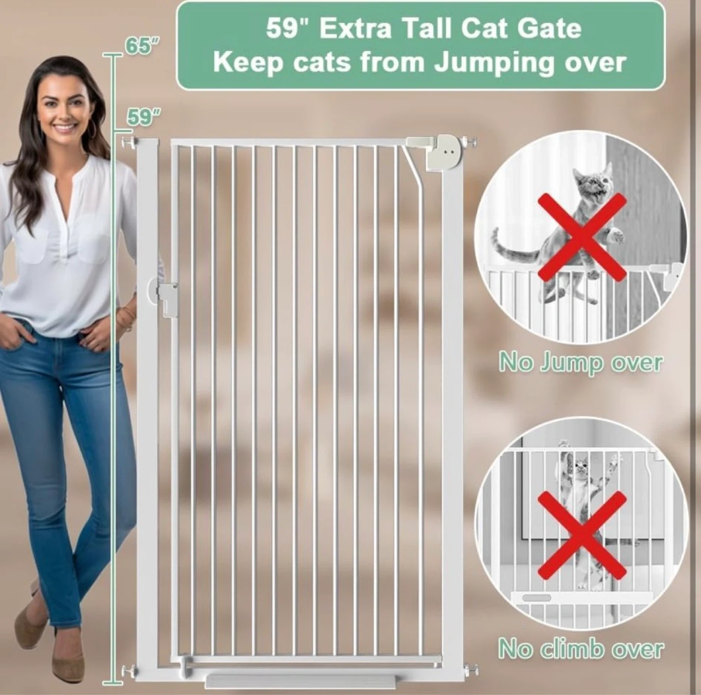 59” Extra Tall Cat & Dog Gate, 32.6-36.2" Wide