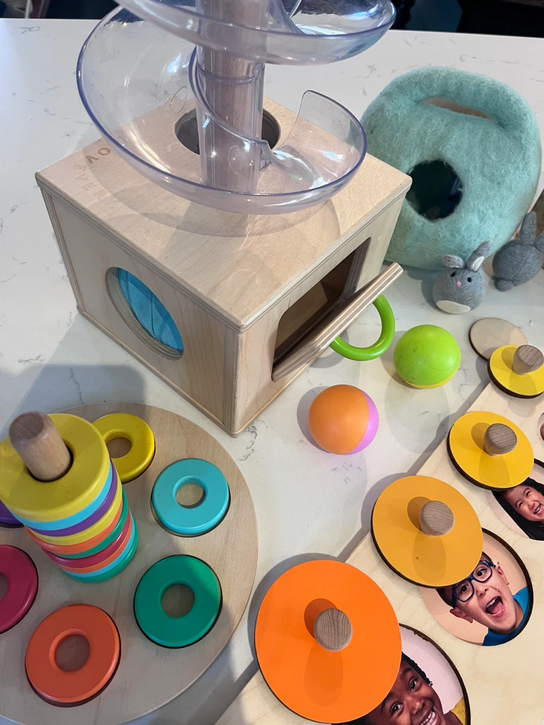 - Wooden ‘Slide and Seek’ ball run (4 different doors around bottom)