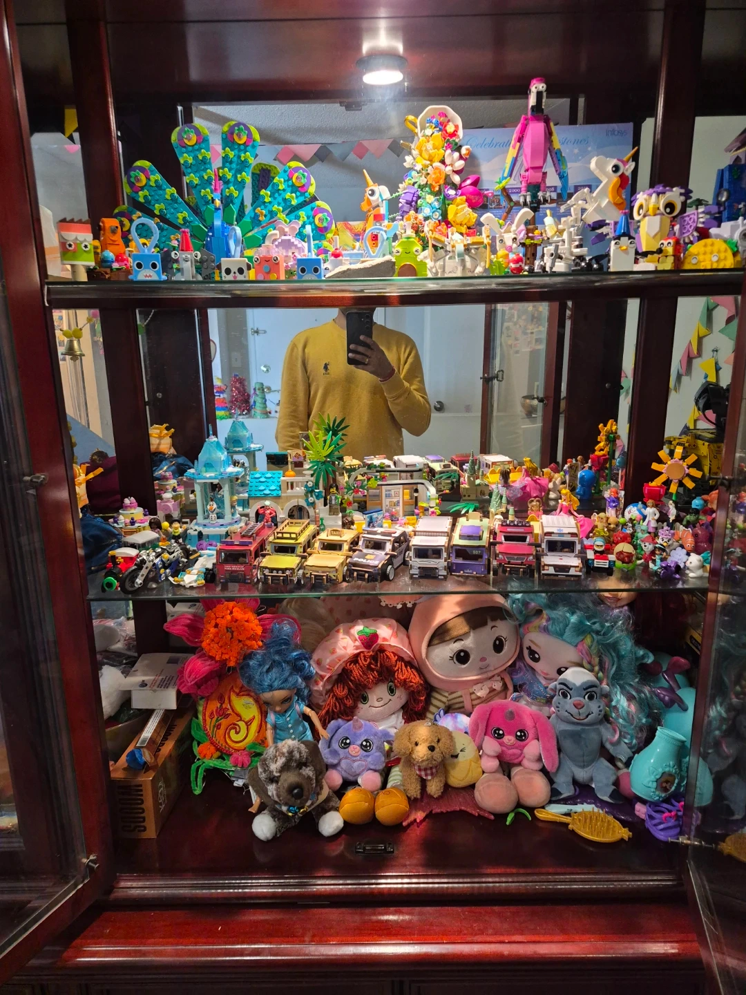 Hutch with beveled glass windows. mirrored glass interior, 2 clear glass shelves and LED display lighting.