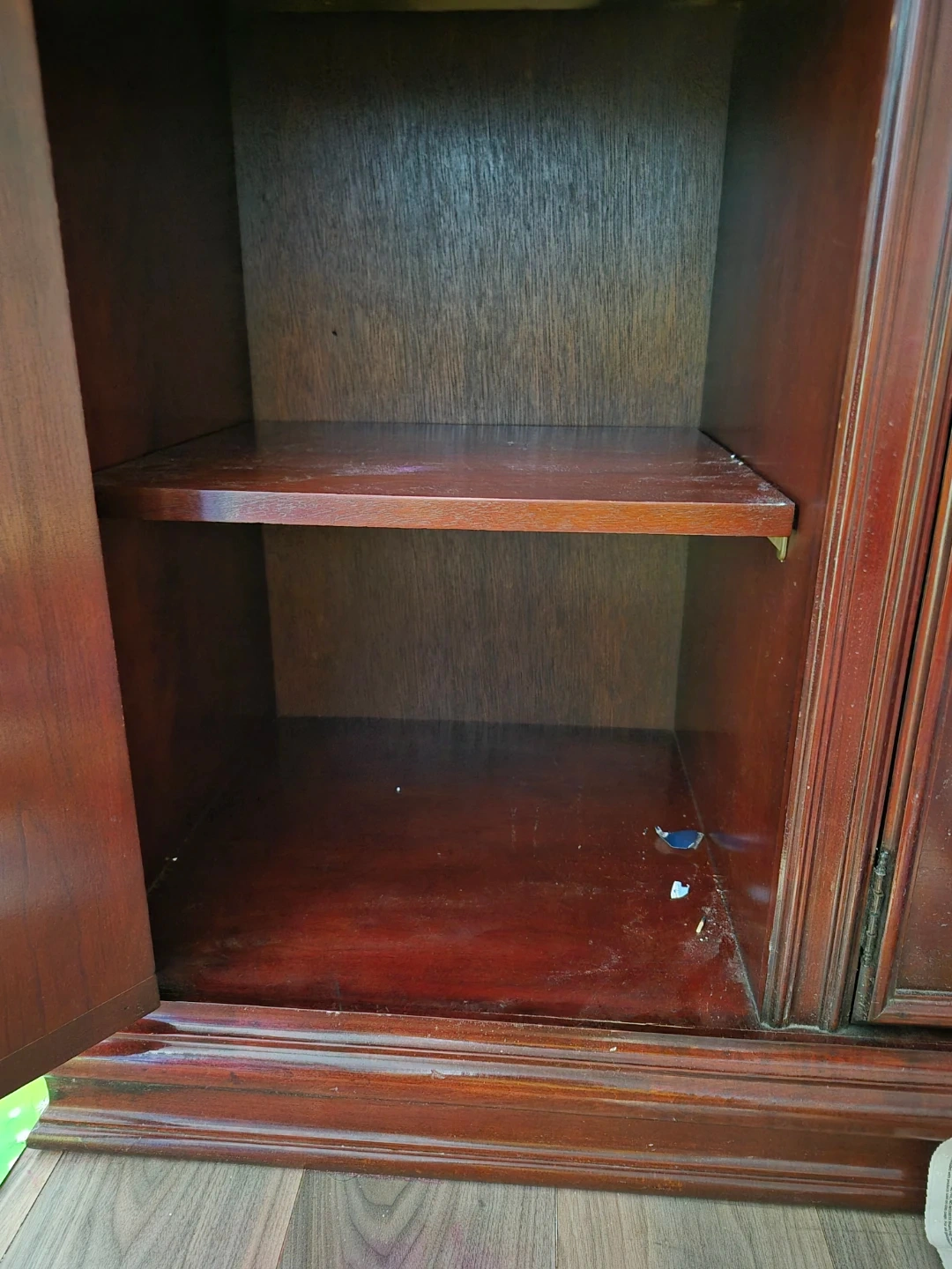 Buffet cabinets each with single adjustable shelf and one drawer with felt lining.