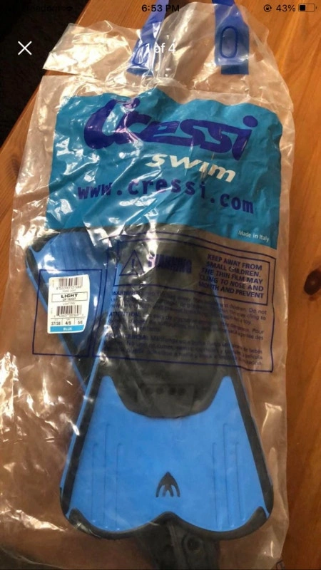Brand new high quality Cressi flippers. Mens size 5/6 or women's size 6/7. These sell for $83 on amazon, asking only $20! Made in Italy. I have a couple of these available (same size). Cash accepted.