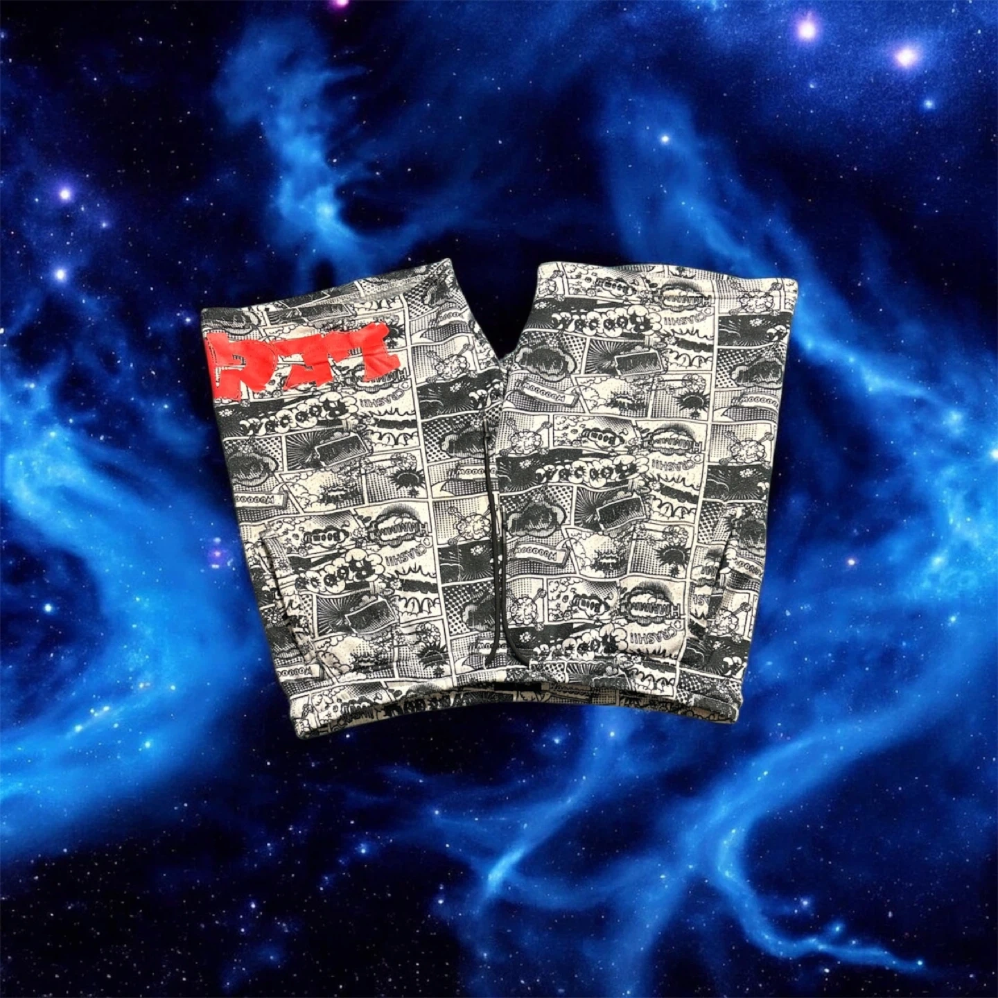 These shorts feature a fun comic book-style graphic print all over. The elastic waistband ensures a comfortable fit. They're made of a durable material perfect for casual wear.