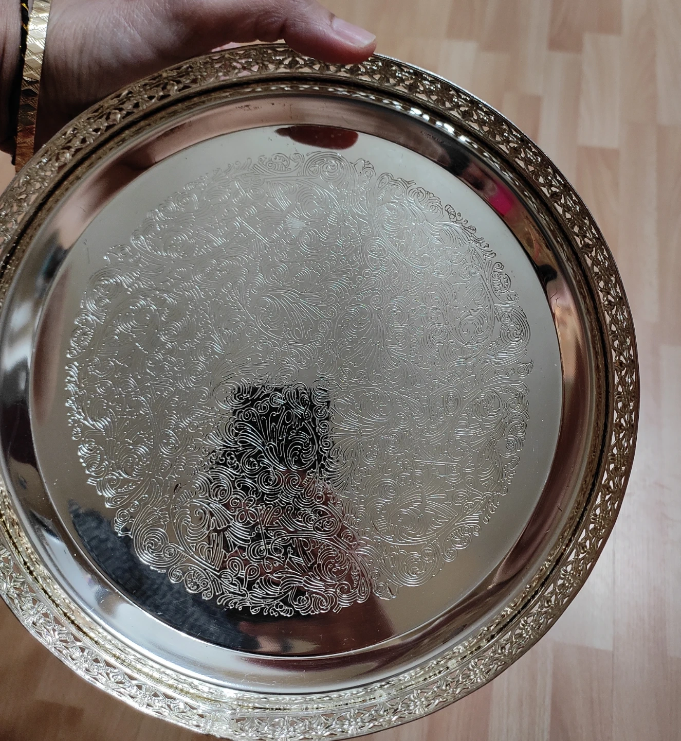 Decorative Silver-Tone Serving Tray
