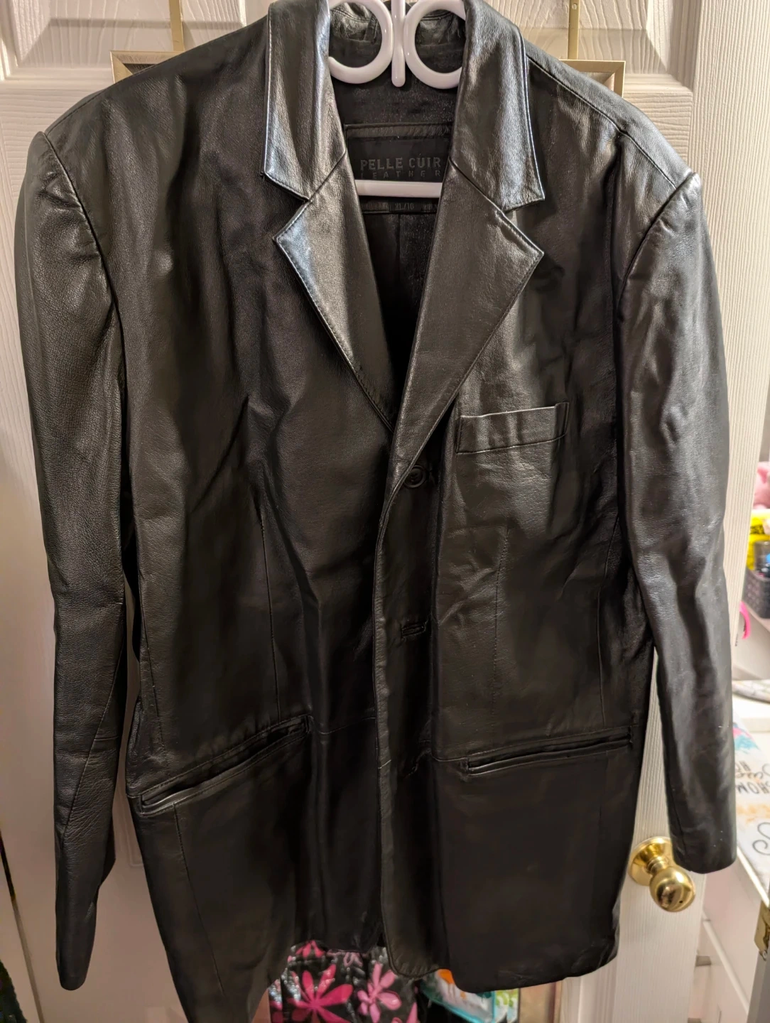 Pelle Cuir leather jacket in black. Size XL/TG. Classic blazer style with button closure. In very good condition. Ideal for cold weather
