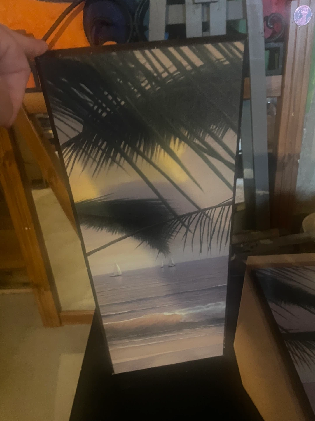 This set includes two canvas prints featuring a tropical beach scene with palm trees and sailboats. They're perfect for adding a coastal vibe to any room. Each piece measures roughly