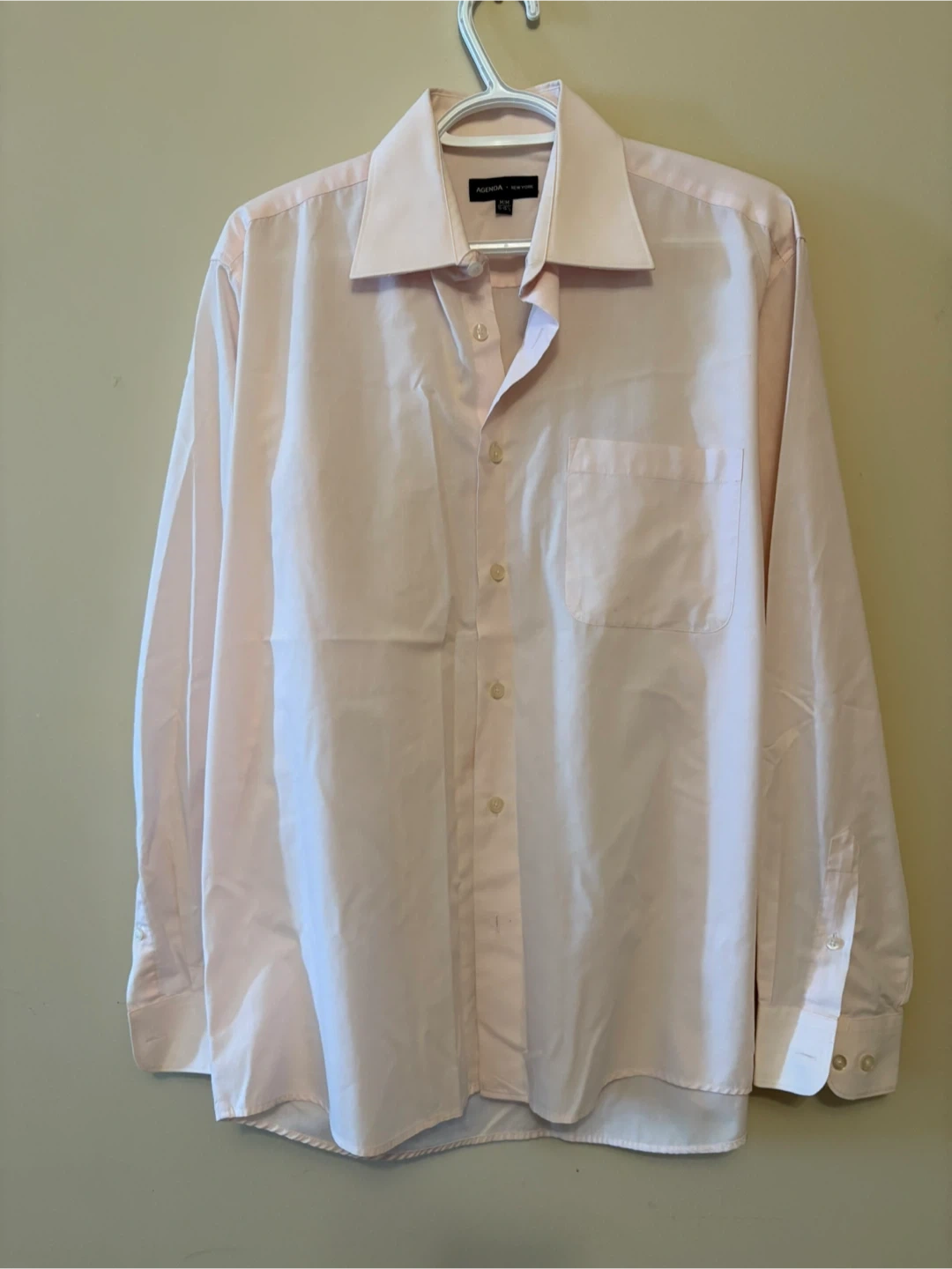 Men's light pink dress shirt from Agenda New York. It's a size Medium/Medium