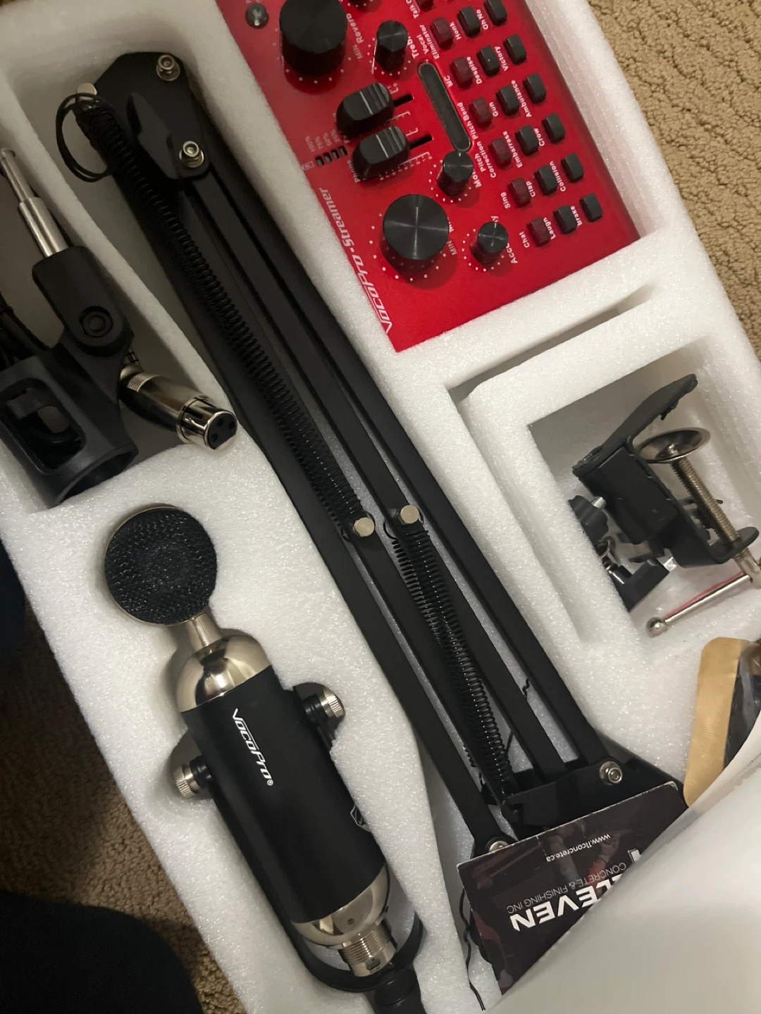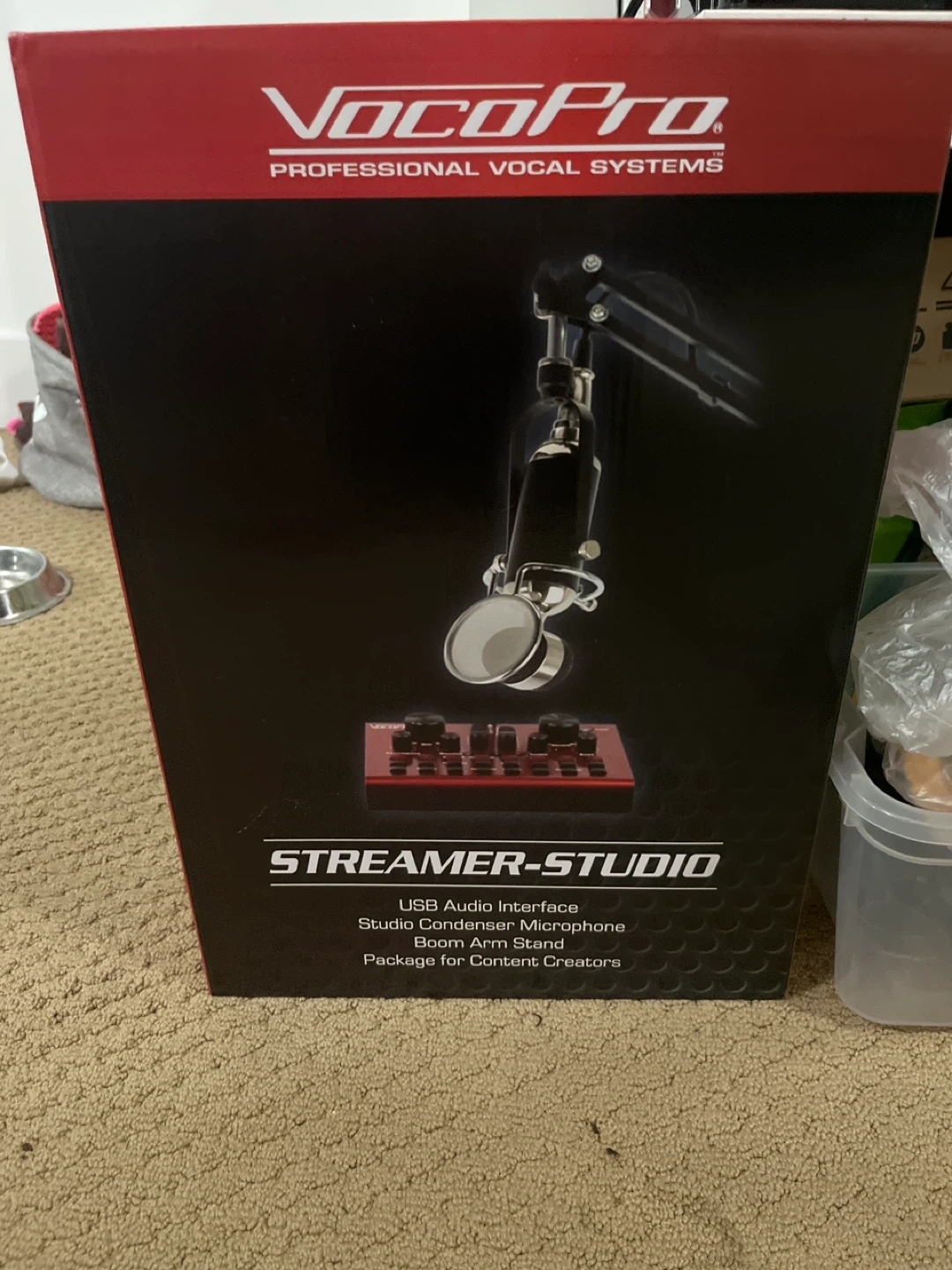 60Selling a Vocopro Streamer-Studio set! It includes a USB audio interface, studio condenser microphone, and boom arm stand. It's the perfect package for content creators. Comes with the original box and all included components
