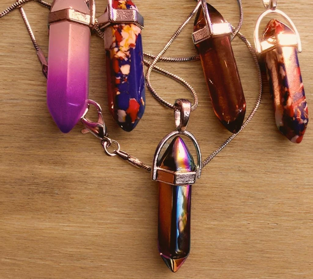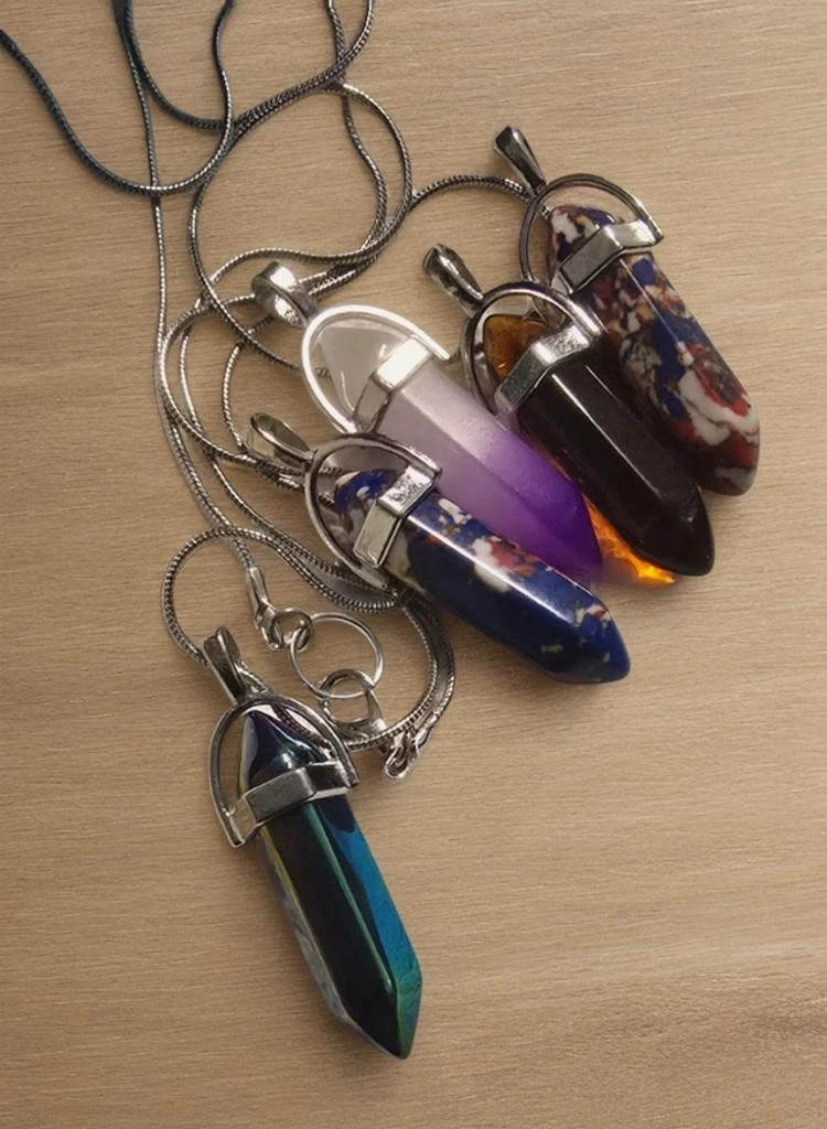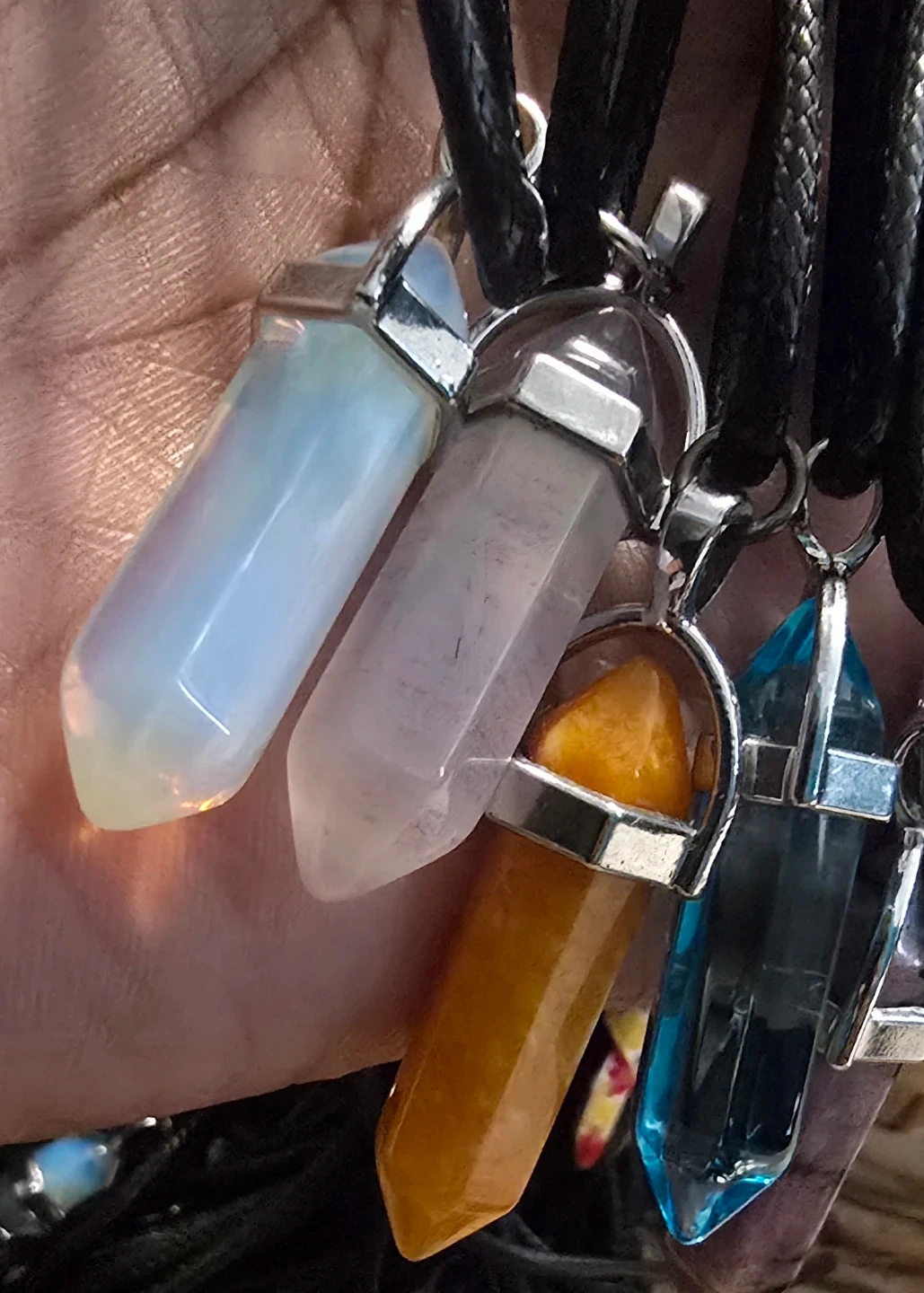 🥕These hand made healing stone necklaces feature polished crystal points in a variety of colors,. Silver-tone caps and bails secure the pendants. Unique stones include yellow aventurine, rose quartz, white howlite, and more red, green, flag colors and much more $4. Each choose from sterling silver, black leather or braided black cord, necklace chain.