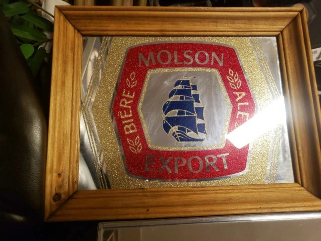 Looking to add a vintage touch to your bar or games room? This Molson Export sign is just the ticket! While it shows some signs of its age, it's still a fantastic piece of Canadiana. It features the iconic Molson Export logo with a sailing ship, all framed in wood. It's a quirky piece that will definitely catch the eye and spark some conversations. I've noticed similar vintage beer signs going for around $50-$100 on Kijiji, so I've priced this one at $75 considering its condition and rarity. If this ad is still up, yes, it's still available! Don't miss your chance to snag this piece of brewing history!