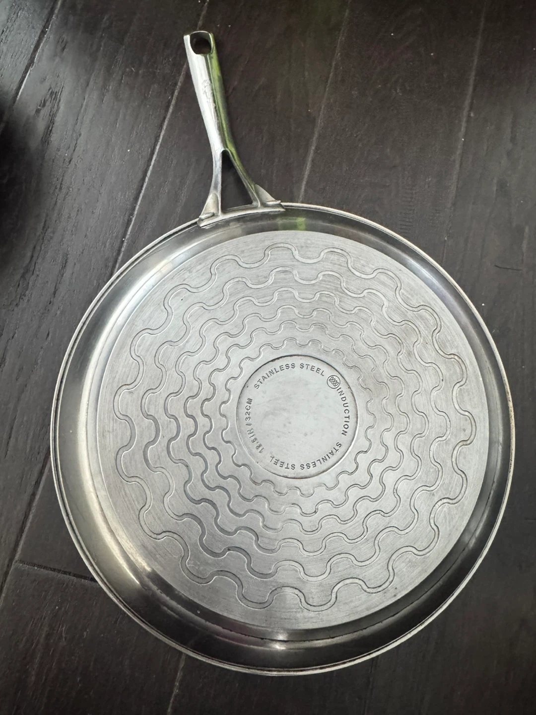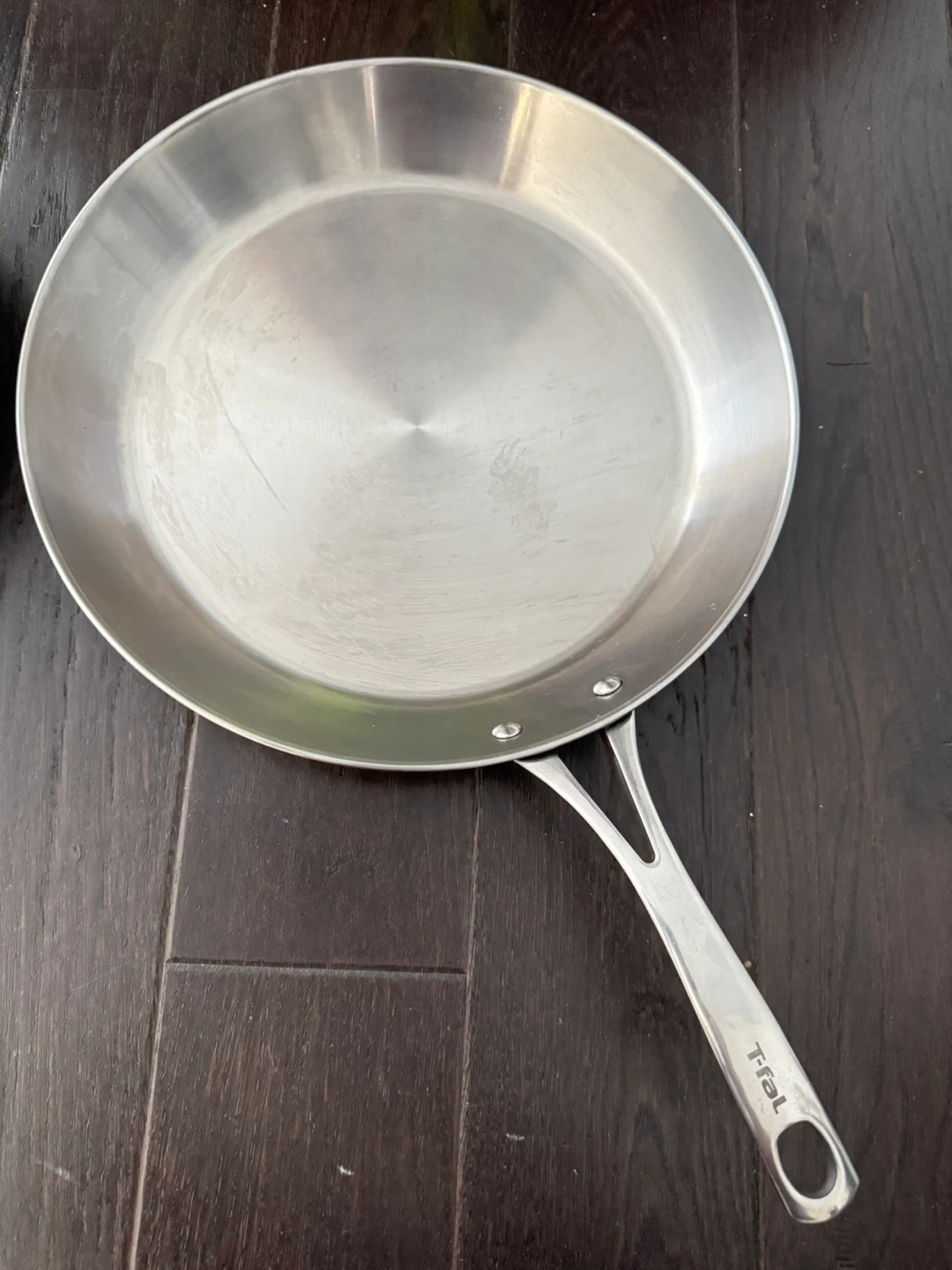 Selling a T-fal stainless steel fry pan, size 32cm. It's in great shape and ready for your kitchen!
