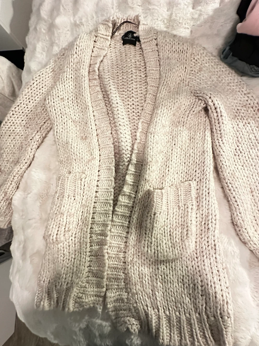 120Cozy up in this Volcom knit cardigan! It's a size XS/S great condition, don’t wear anymore!