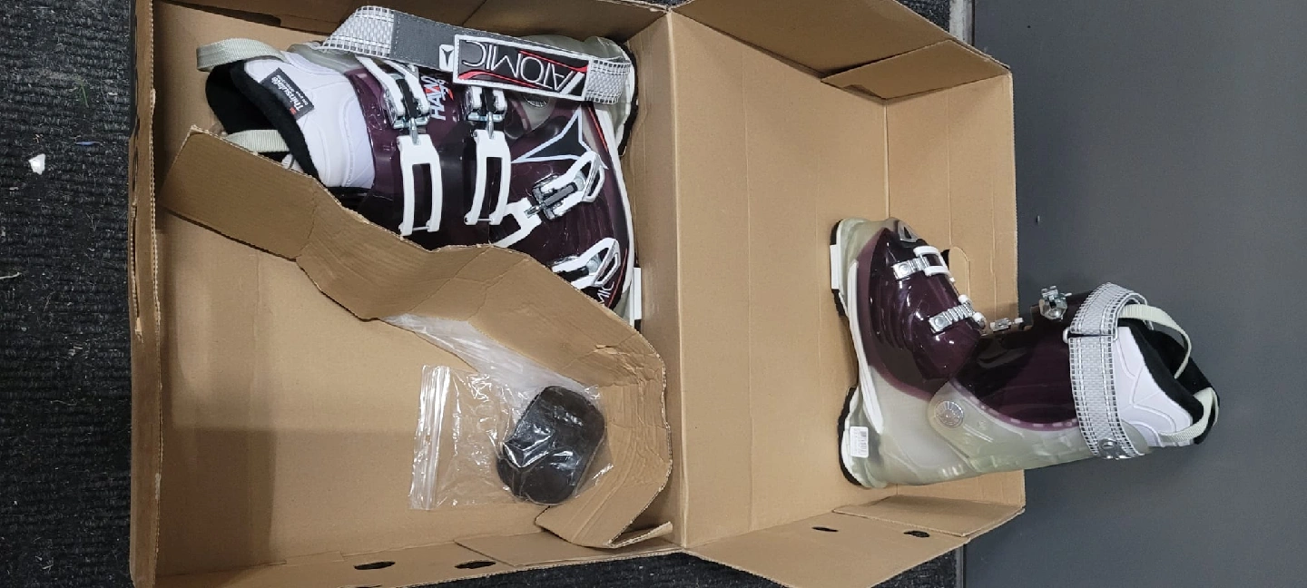 60Selling a pair of Volkl Essenza Viento skis black with purple dots. They are 147 in length and are made in Germany. Great for all condition skiing! Also included a pair of Atomic Hawx 2.0 90 W women's ski boots in purple and white, size 23.5 equivalent to size 6 for female. The box is included! Everything is brand new! I give you the helmet and goggles