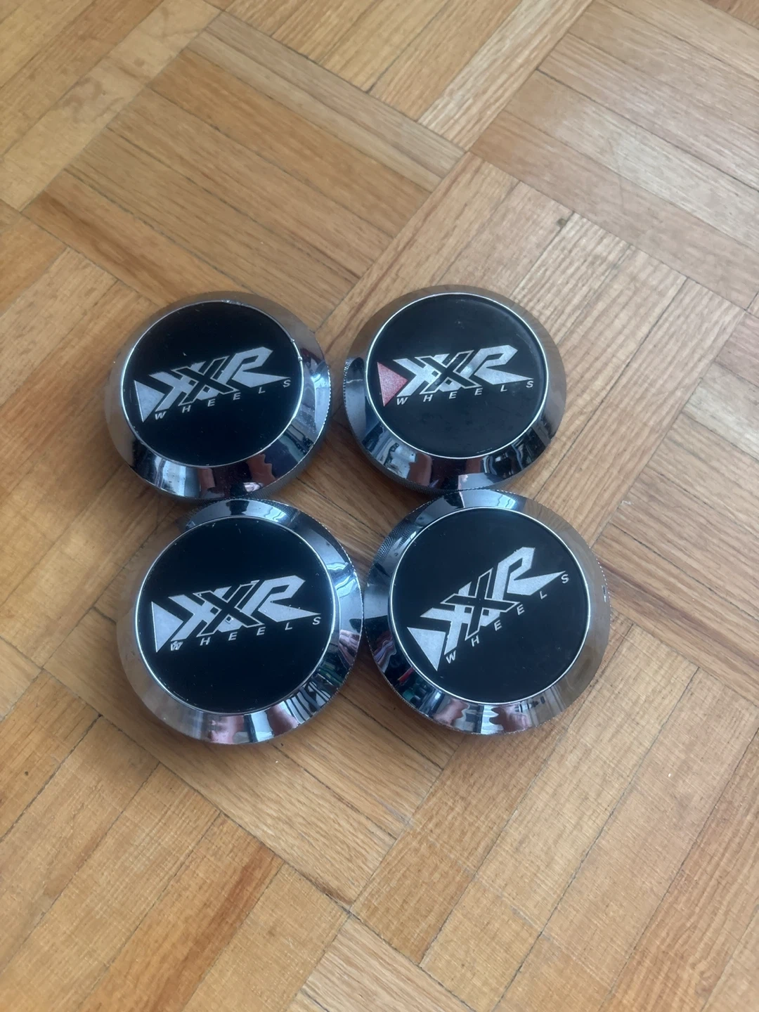 Set of four XXR Wheels center caps. These caps feature a chrome-finished rim with a black face and the XXR Wheels logo. They're designed to fit XXR brand wheels.