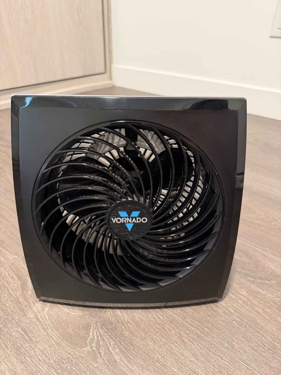 65Selling a small and compact Vornado fan in black. Model 573T. 3 speed manual control. Effective for circulating cool air in a small room. Dimensions: 6.2D x 10.5W x 9.8H (cm) Pick up and cash only. No refunds.