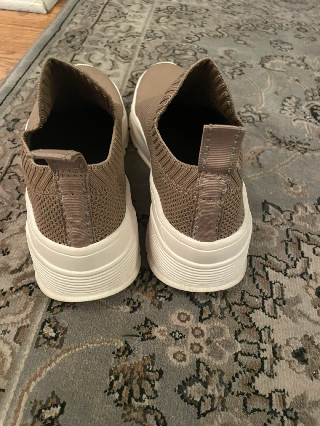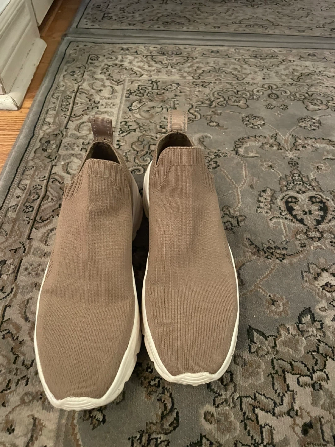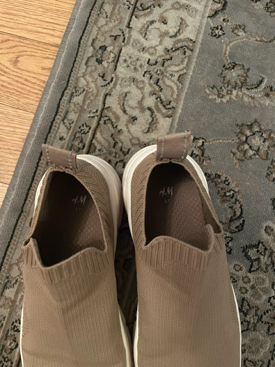 Selling a pair of H&M slip-on sneakers in a neutral, earthy tone. They're in great shape and a size 7. Perfect for casual outings or just lounging around!