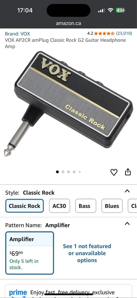 63VOX headphone guitar amp. For details - https://www.amazon.ca/AP2CR-amPlug-Classic-Guitar-Headphone/dp/B00NAUE7KU/ It retails for 70$ before tax and I’m selling it for half the price. Cash preferred and pickup address is Wellesley station.