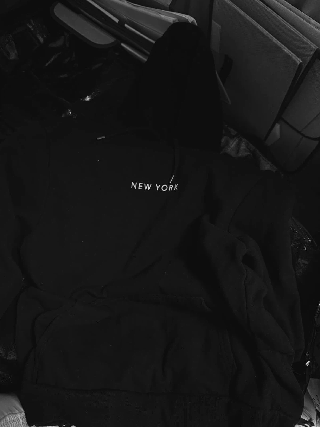 A comfy black sweatshirt with 'NEW YORK' printed on the front. It's in great condition!