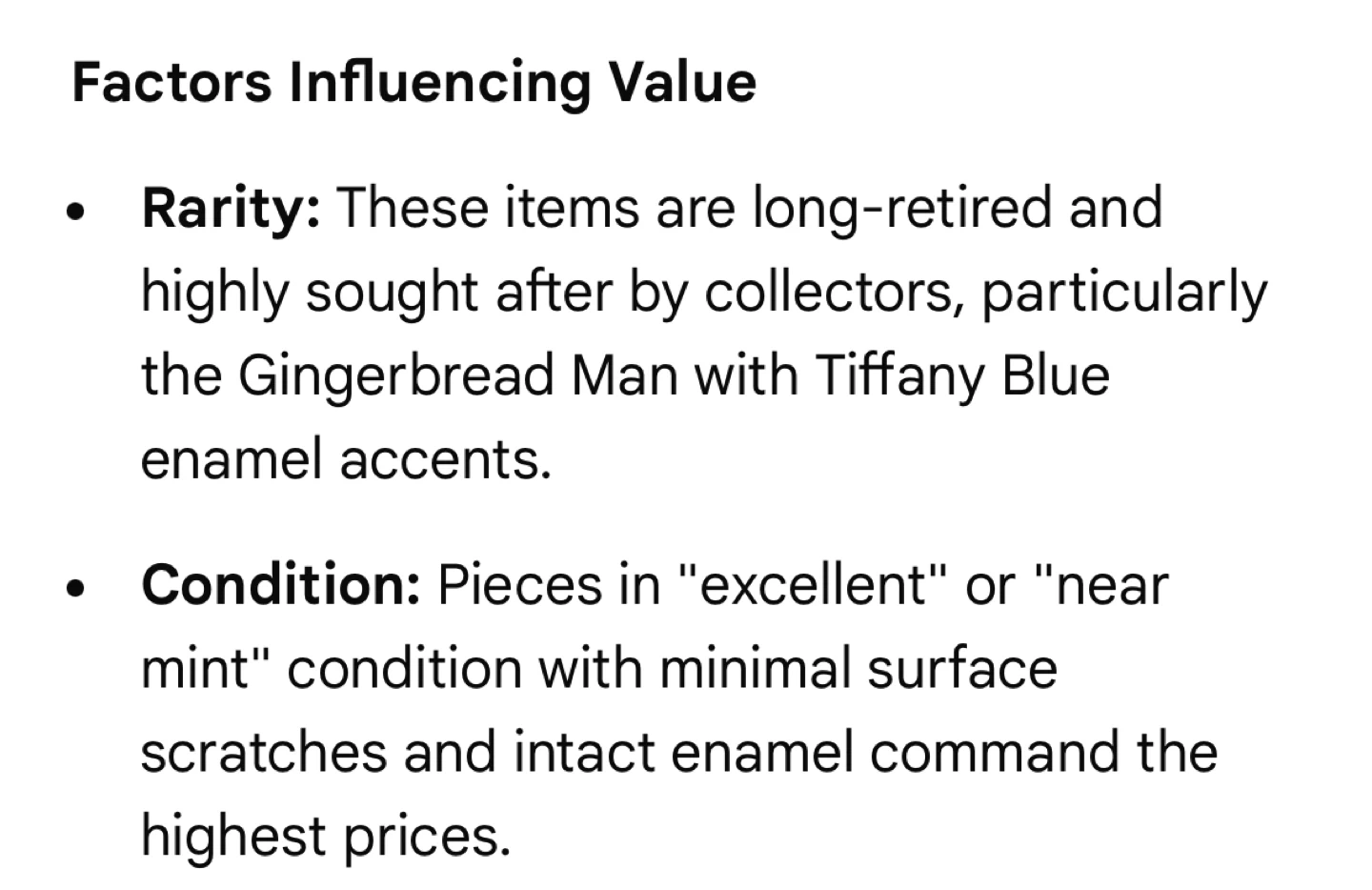 The gingerbread man alone has sold for over $2000 in similar condition. With the candy cane and the original silver chain, my reasoning for this price is valid. That said, I’m still open to offers. I just won’t go below a certain amount. Especially considering the condition of these charms are mint (despite being tarnished).