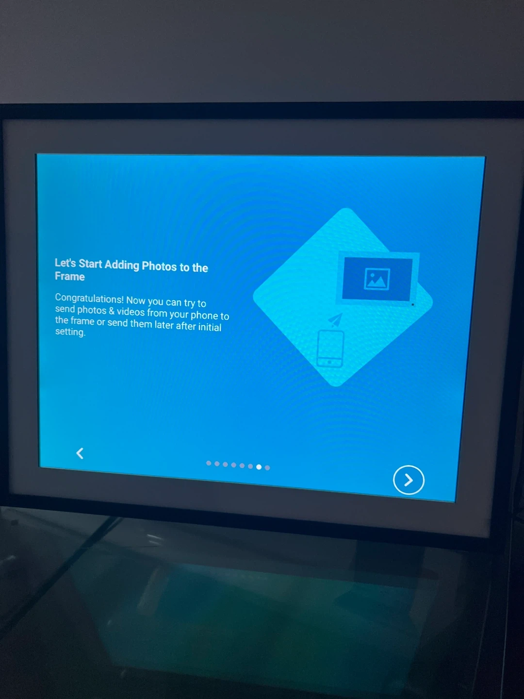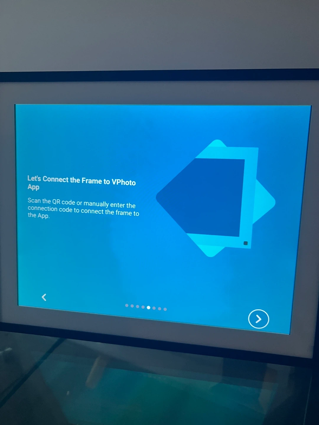 Selling a VPhoto smart digital picture frame. Add photos and videos from your phone to the frame or send them later after the initial setting. You can add a mailbox for sharing later after completing the detailed instruction in the main menu.